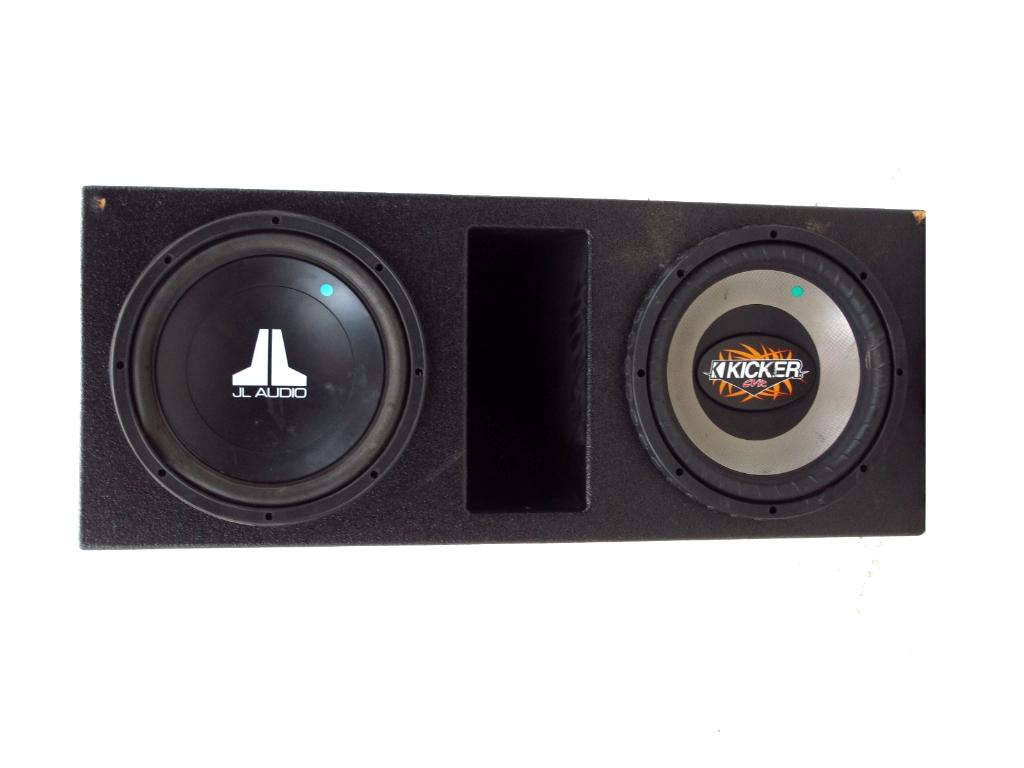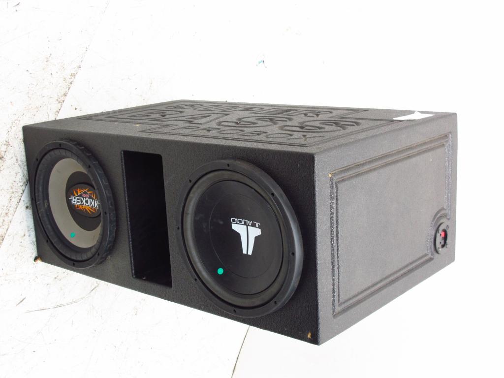 Get a great deal with this online auction for a box with subwoofers presented by Property Room on behalf of a law enforcement or public agency client. - Super Bass Pro Box with JL Audio 12" Subwoofer and Kicker CVR 12" Subwoofer