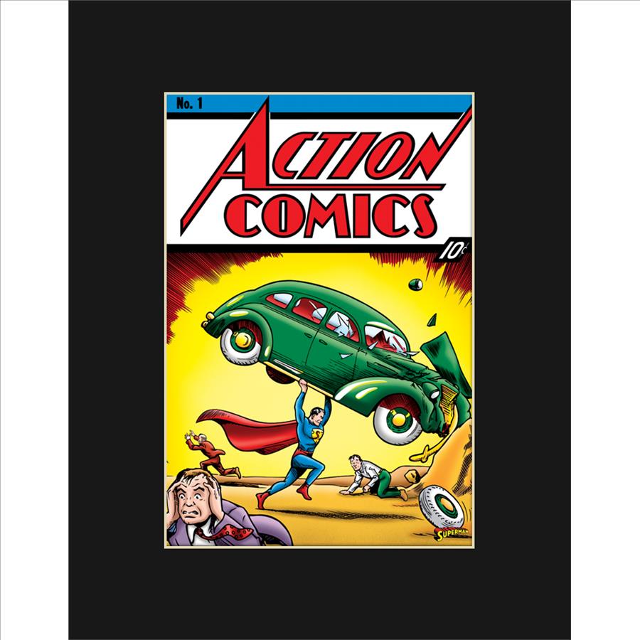 This limited-edition matted lithograph is entitled “Superman Number 1.” In 1938. Superman debuted in Action Comics #1 (cover-dated June 1938) and subsequently appeared in various radio serials, newspaper strips, television programs, films, and video games. With this success, Superman helped to create the superhero archetype and establish its primacy within the American comic book. This edition is limited to 5000 hand-numbered pieces. Licensed. Presented Matted with COA -11x14