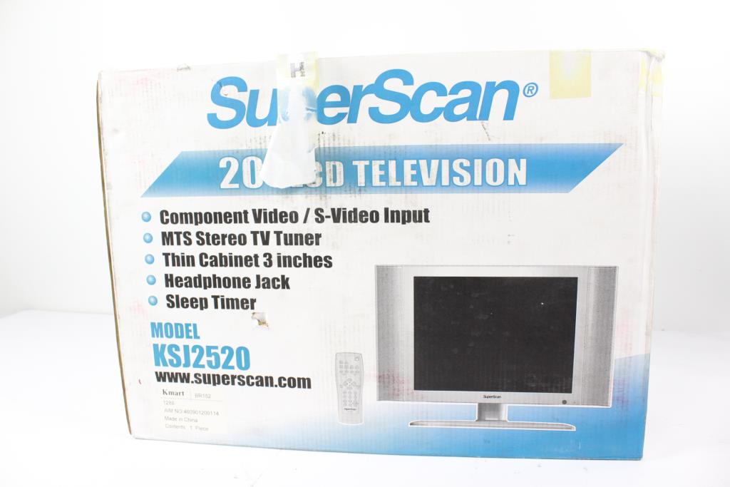 Get a great deal with this online auction for a SuperScan 20" LCD TV presented by Property Room on behalf of law enforcement or public agency client. Item sold as-is. Condition is new in open box. Condition: New This item was received in an opened box. Some parts may be missing.