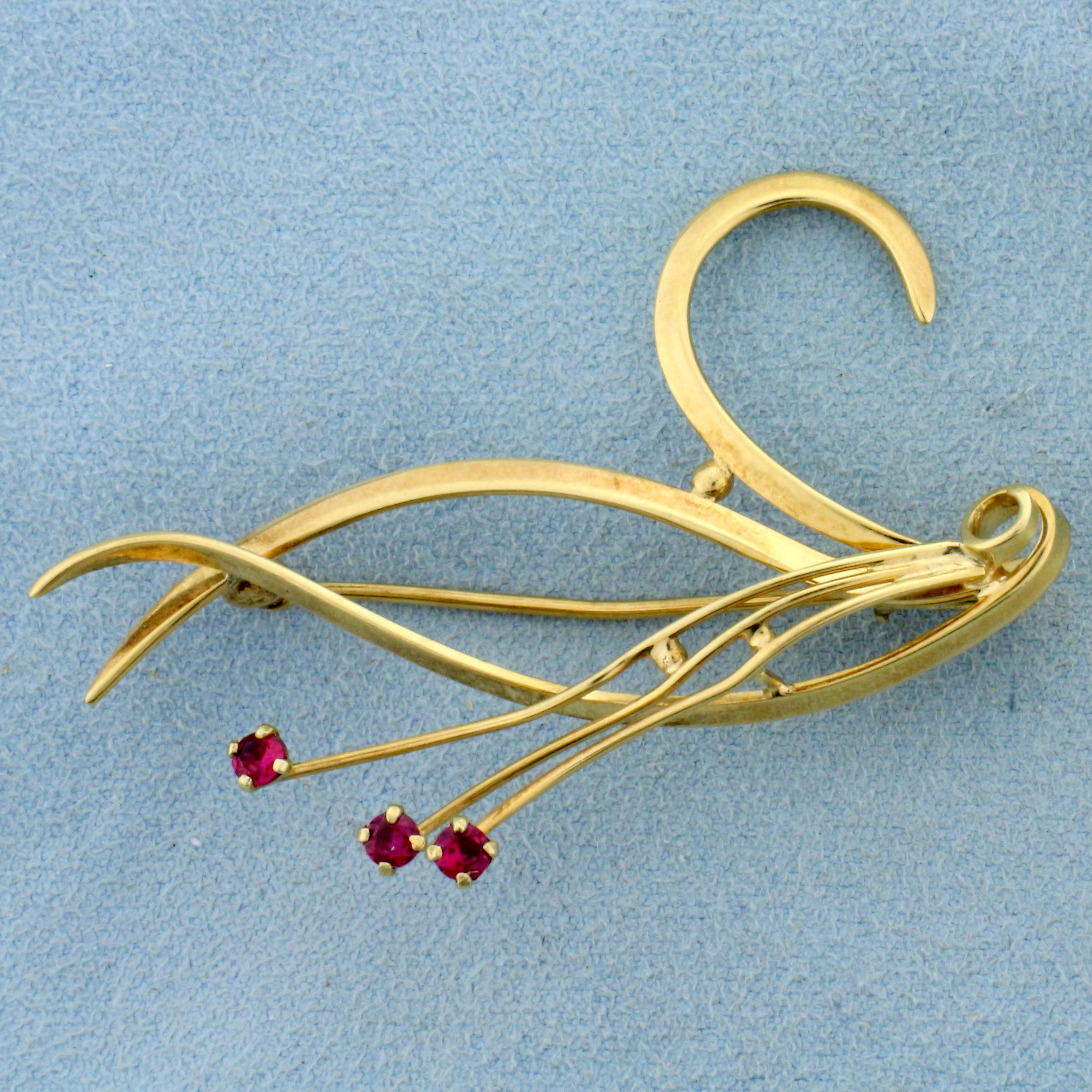 Swan Design Ruby Pin in 14K Yellow Gold