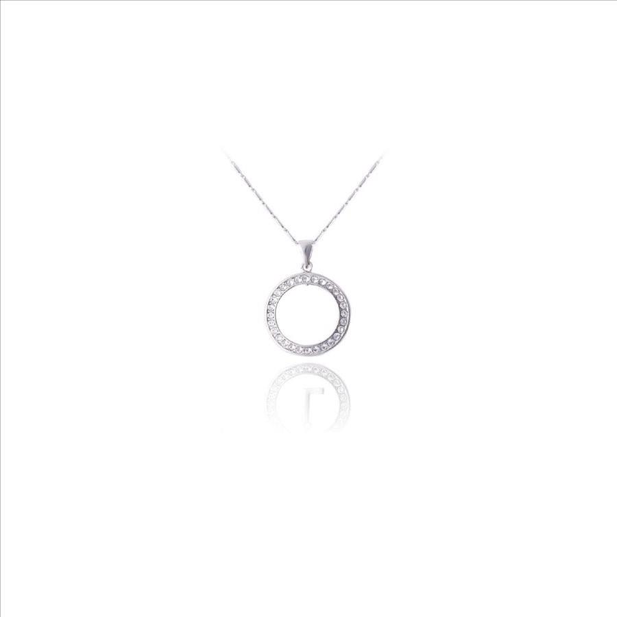 • Exquisite in its elegance, this trendy yet classic pendant is a must-have. The sheen and outer ring offsets the glitter of the inner circle that sports clear crystals set in the classic pavé style. A hint of shine is always appreciated! this pendant comes on a chain