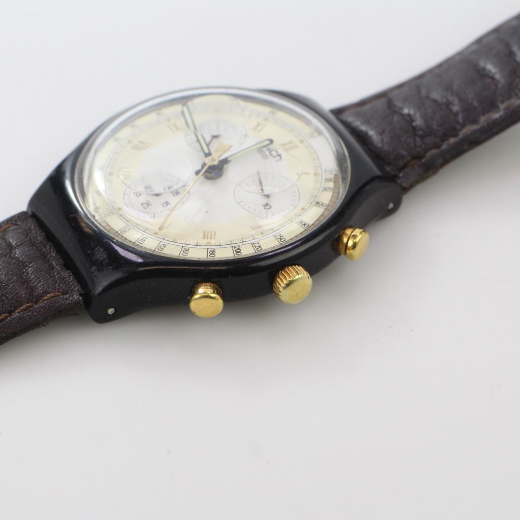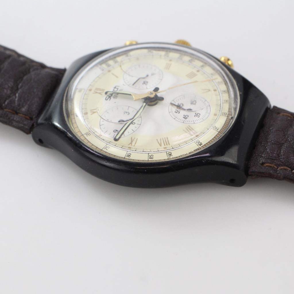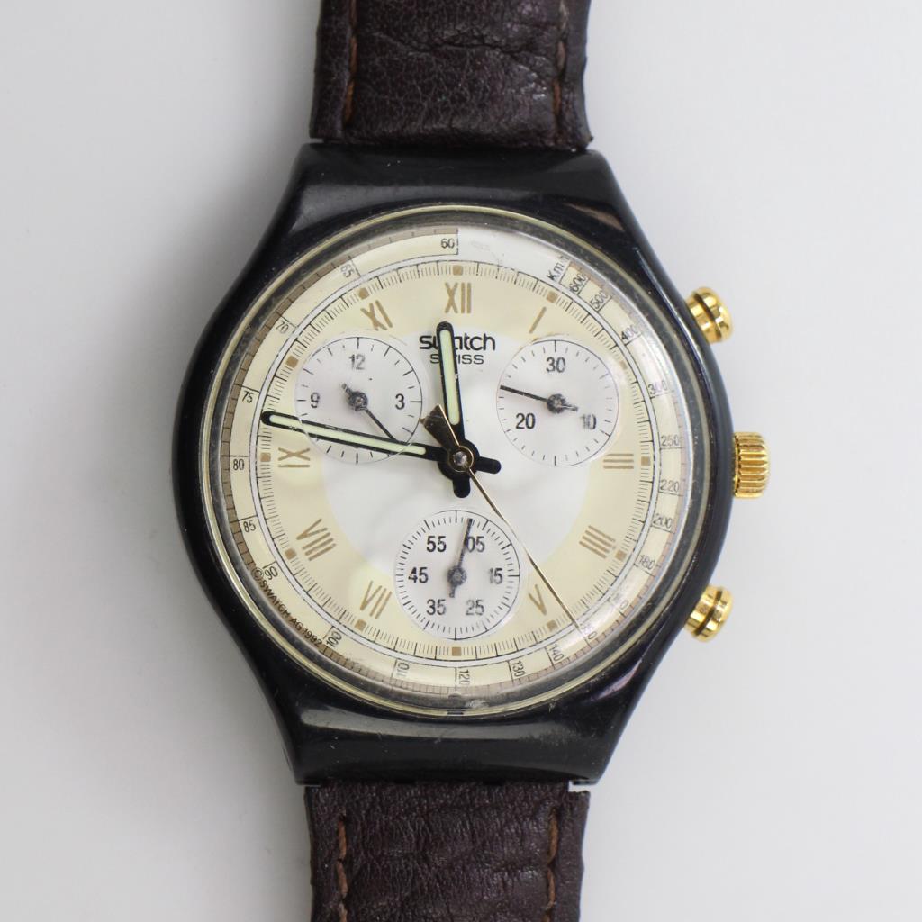 • swatch brown leather watch