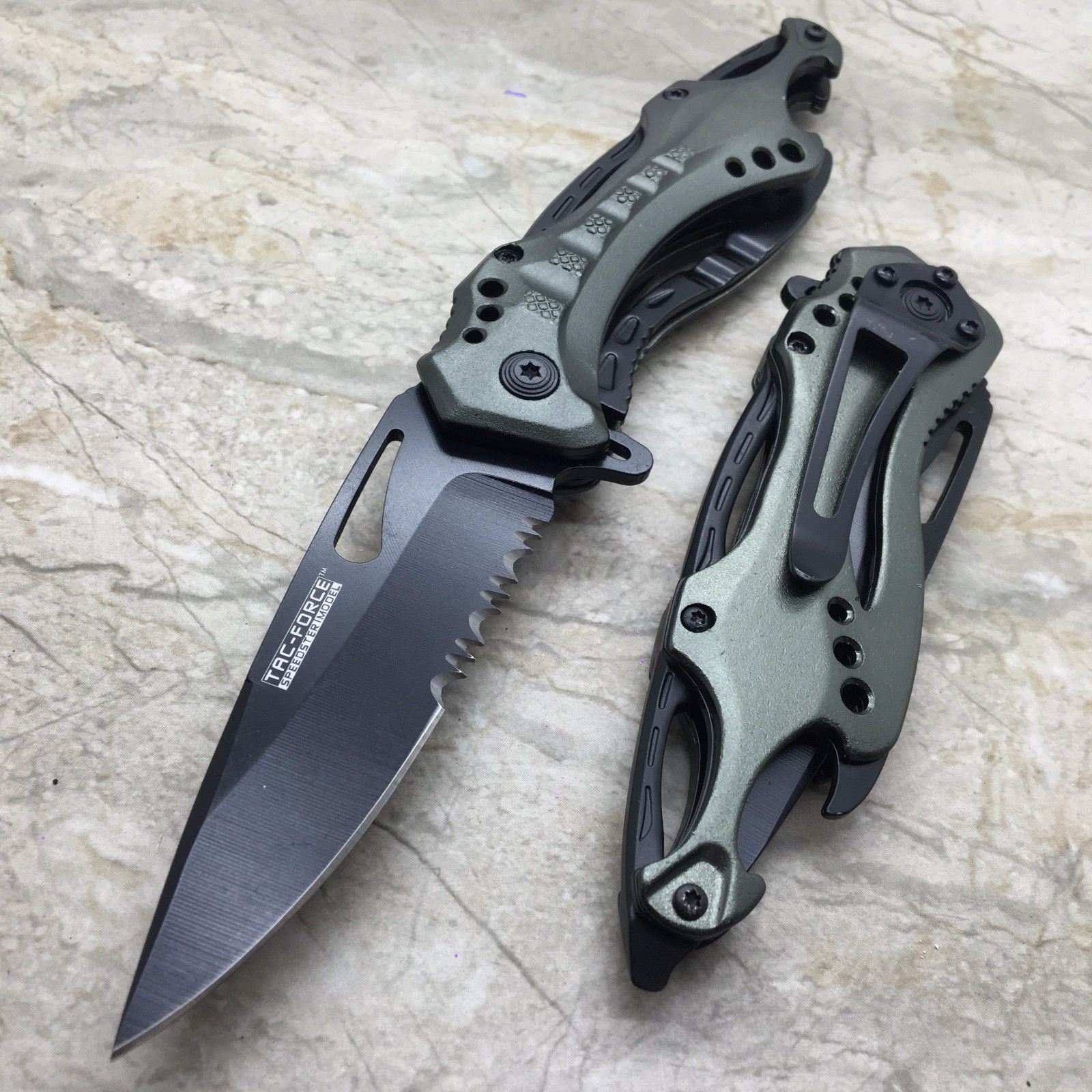 Tac-Force Grey Handle Hunting Outdoor Camping Can Opener Pocket Knife
