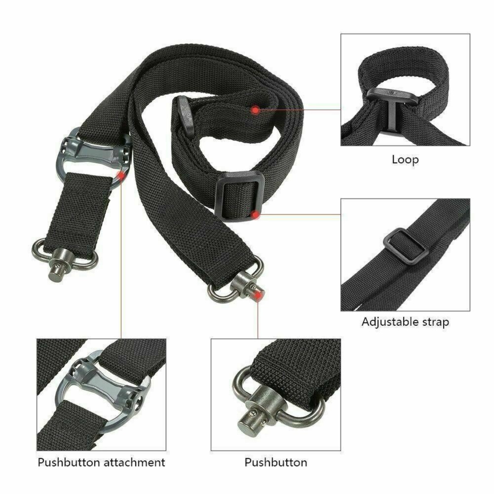 Fast transition from one-point to two-point configuration, Adjustment Loop for rapid adding or removing sling tension with a single-hand.