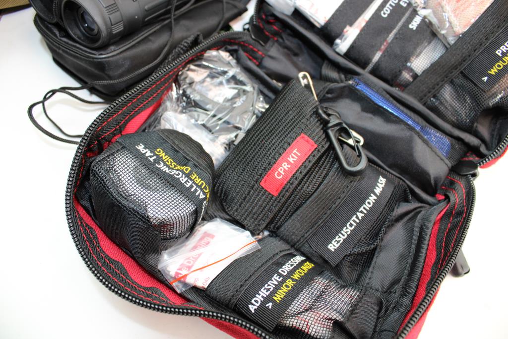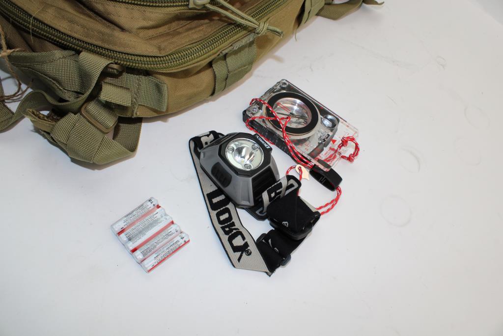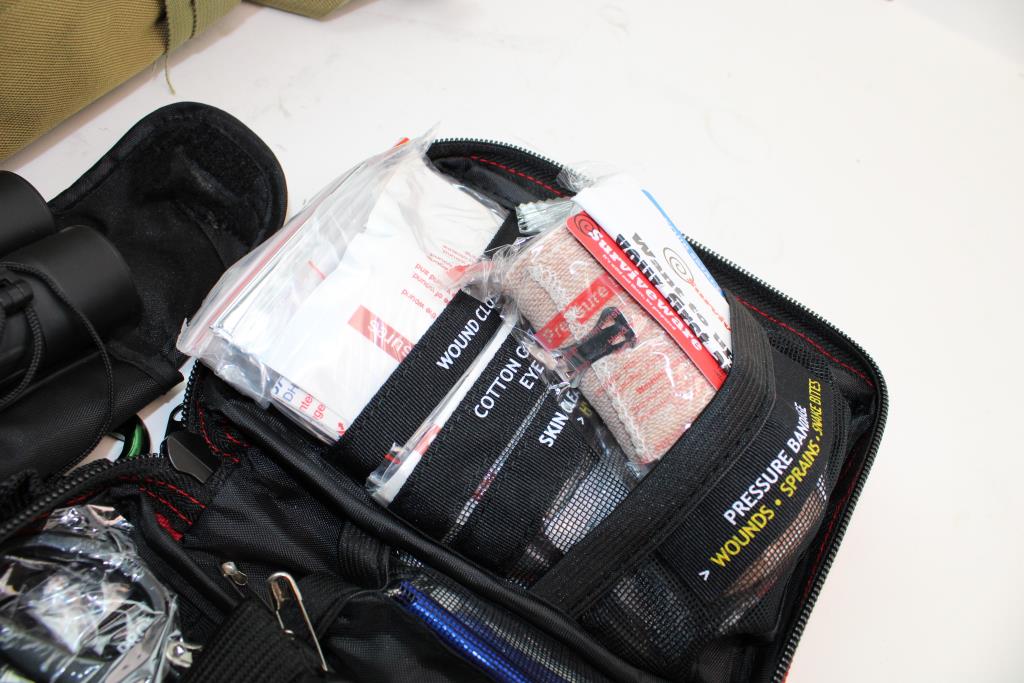 Get a great deal with this online auction presented by PropertyRoom.com on behalf of a law enforcement or public agency client. - Tactical Backpack, Compass, Humvee 12x25 Binoculars, Surviveware First Aid Kit And More: 5+ Items