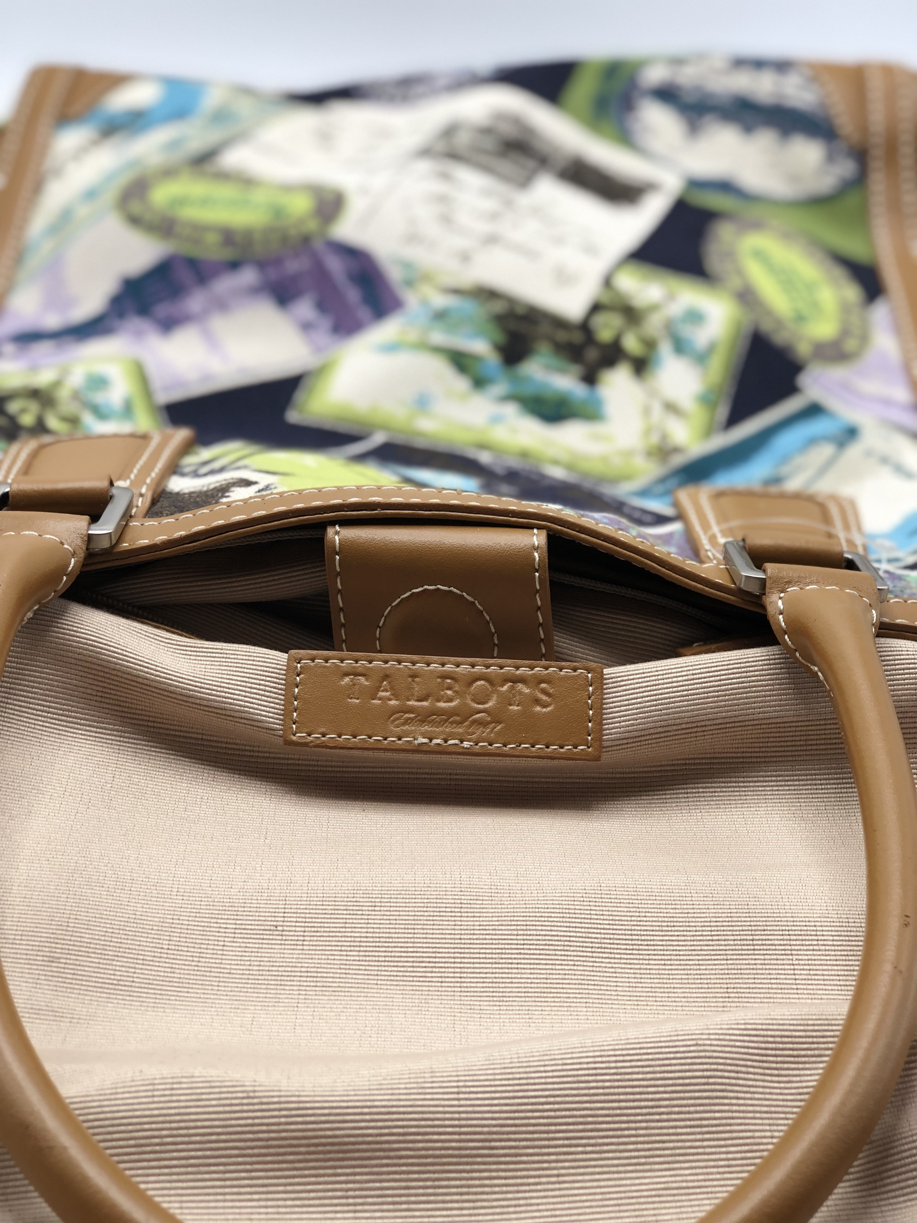 Design :Talbots Travel Canvas Leather Tote Bag Retail $250