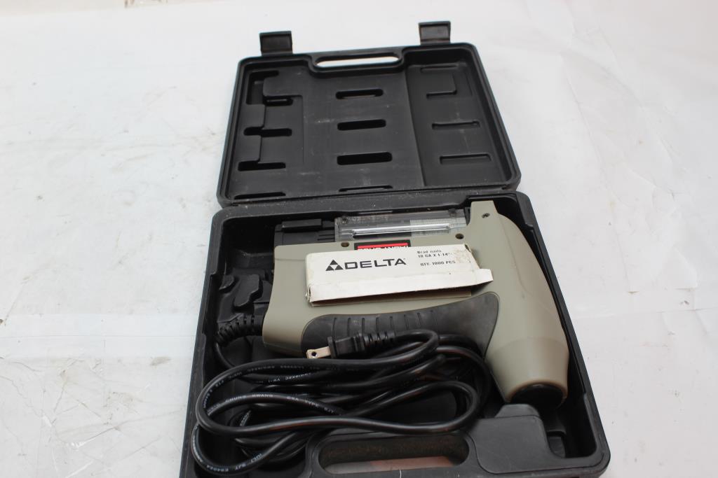 - Accessories: Case and Delta 18GA x 1-14" brad nails
