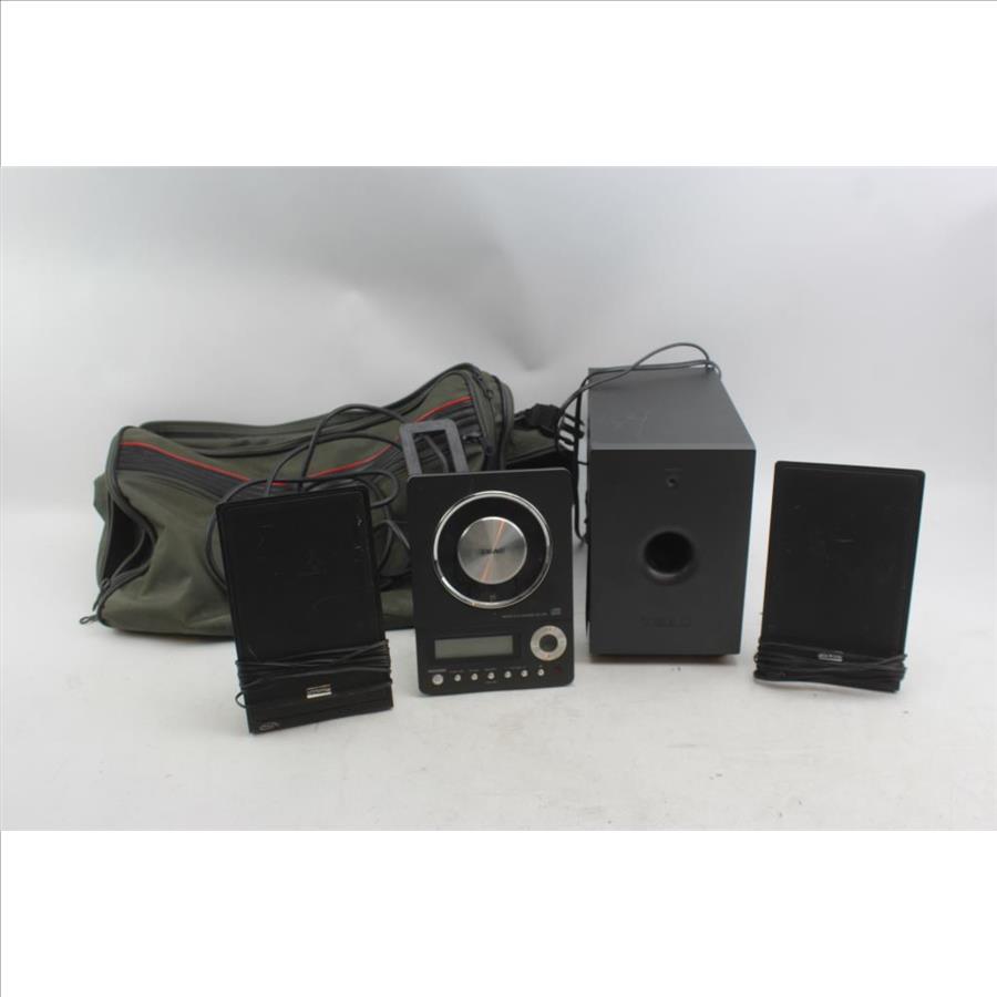 - Cosmetic Condition: Good (item has minor signs of wear; minimal surface wear/some scuffs/scratches/mostly some dust/dirt particles/light webs; subwoofer exterior black cover is peeling off)