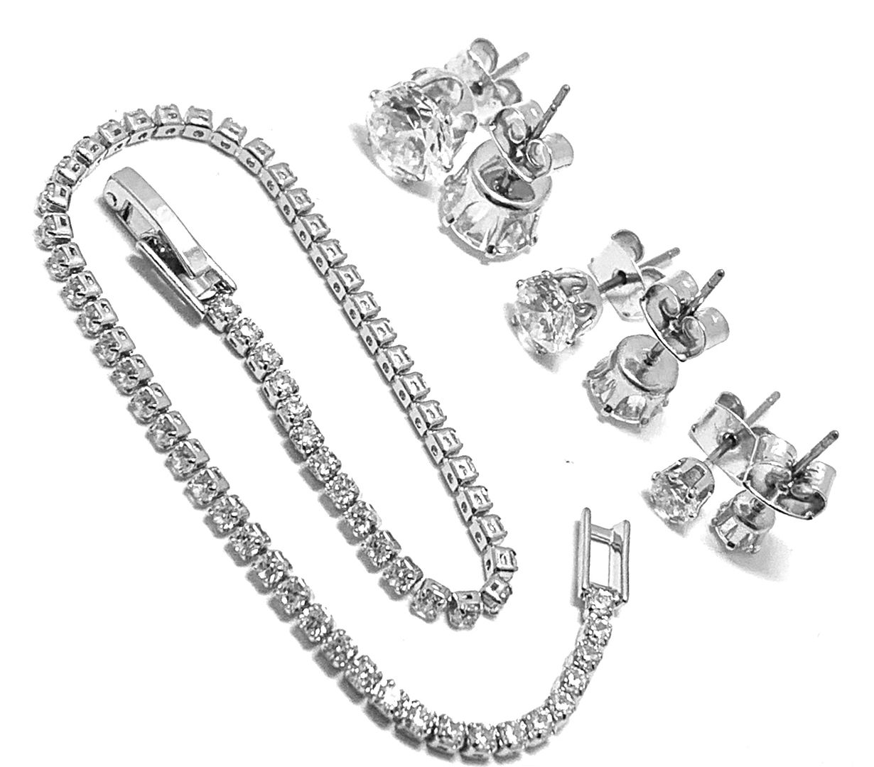 Tennis Bracelet & 3 Pairs Stud Earrings Lot. 12.50ctw Diamonique Diamond