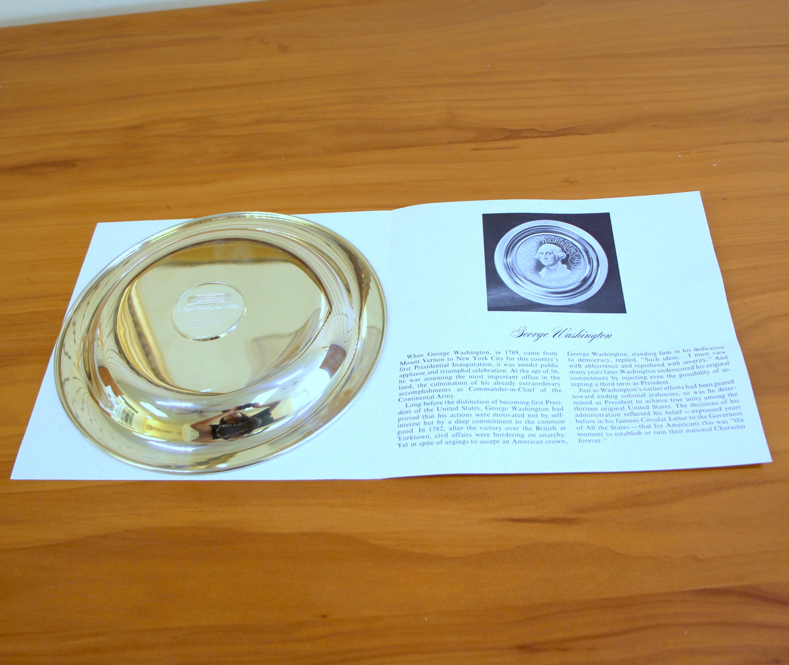 In .925 Solid Sterling Silver with 24k Gold inlay. 8 inch diameter. Issued by The Franklin Mint. Paperwork included. 201.6g.