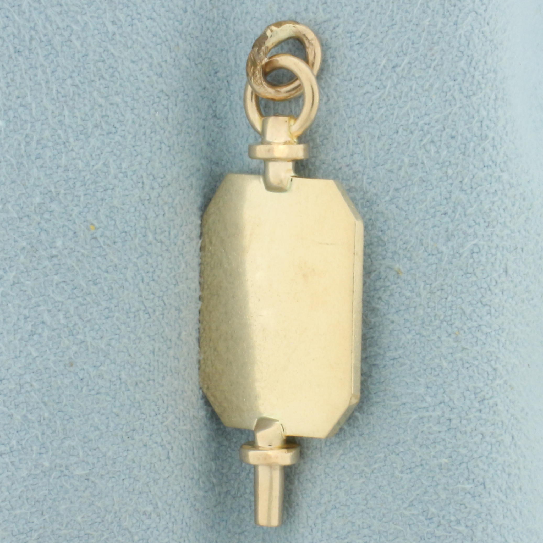 In 10k yellow gold. 1 3/8 inches long and 5/8 inches wide. 3.7g.