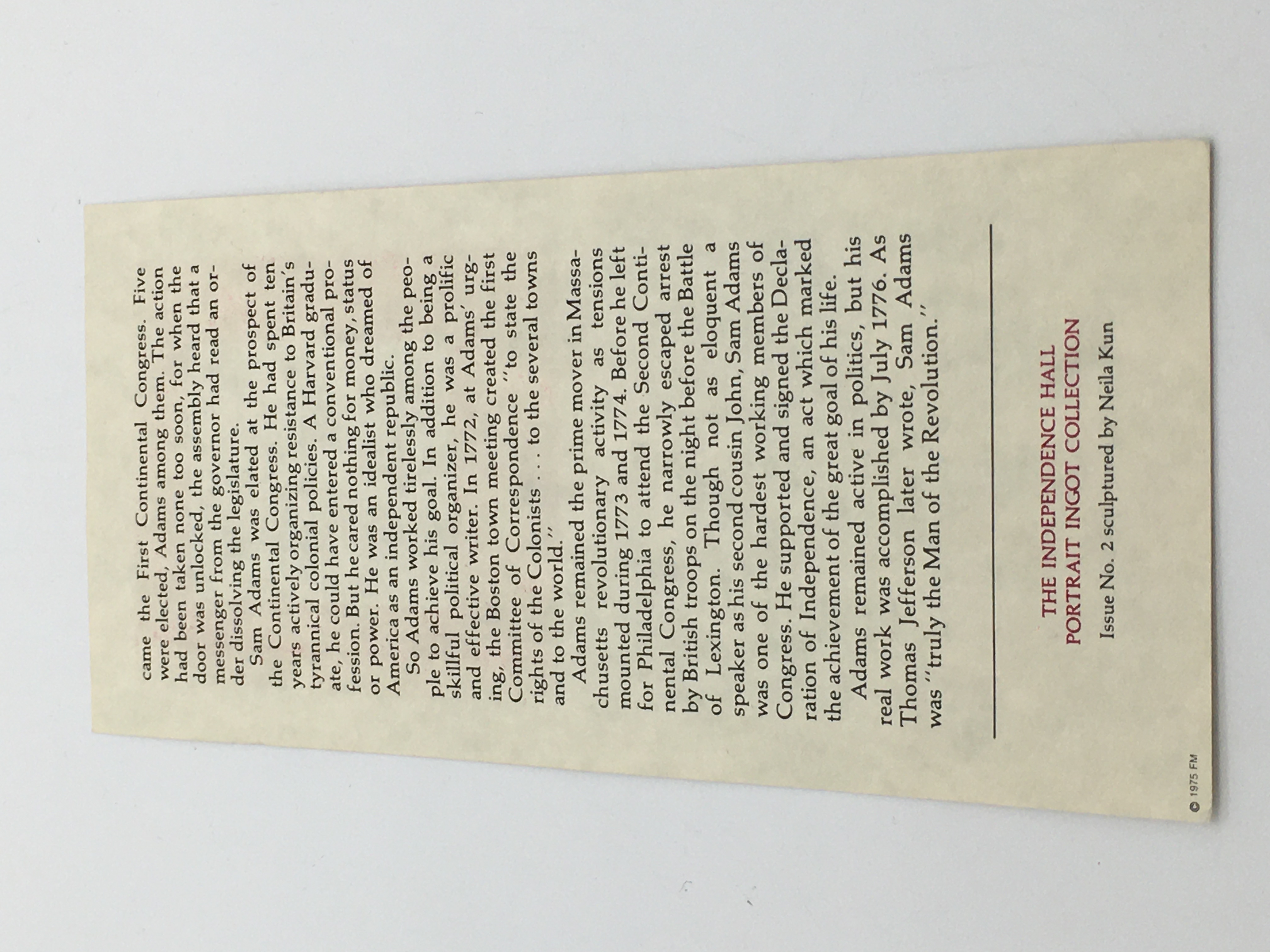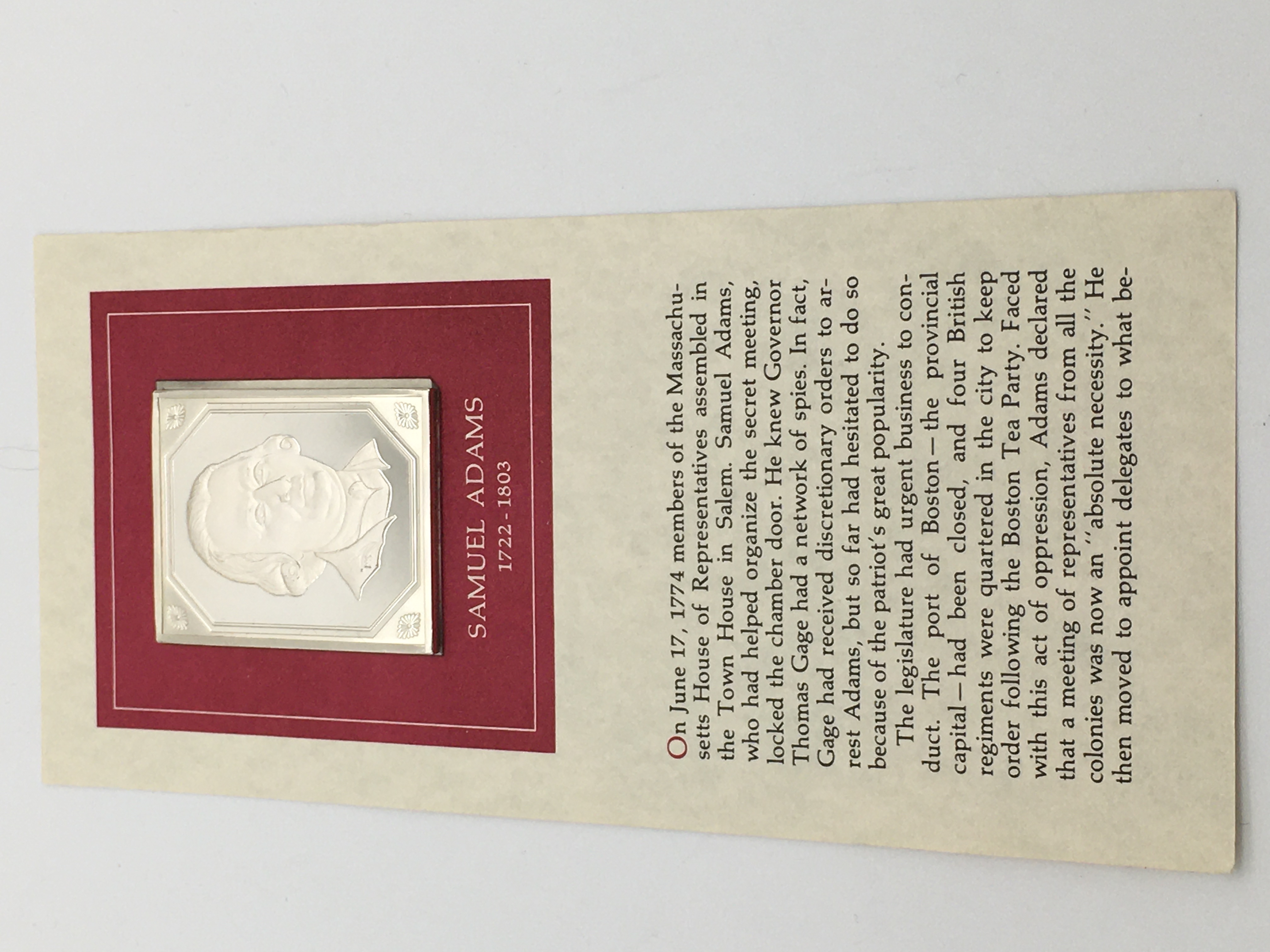 The Independence Hall Portrait Ingot Solid Sterling Silver 1oz Pure Silver Samuel Adams
