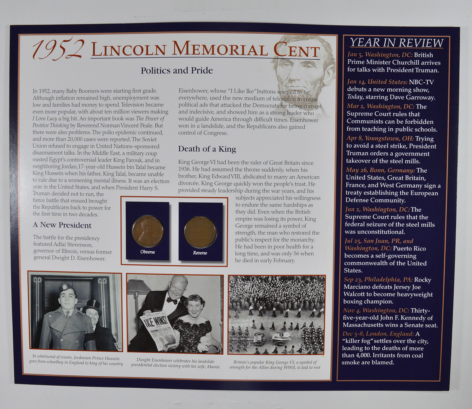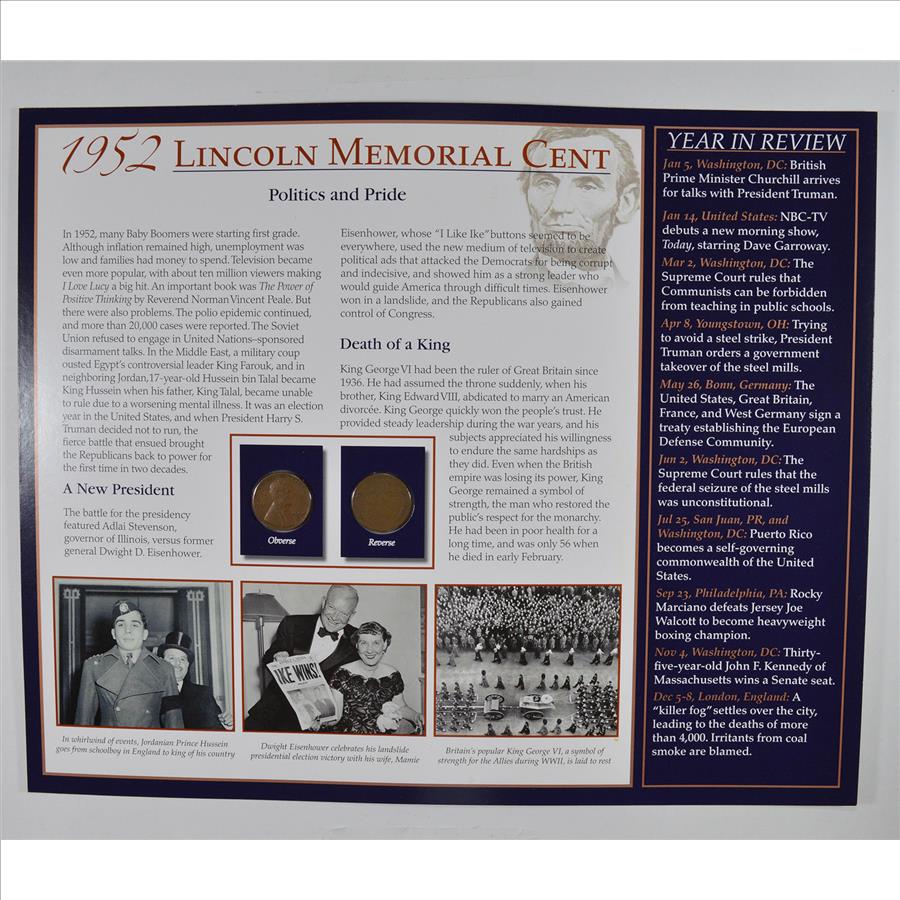 The Lincoln Bicentennial Coin Collection Series - 1952 Lincoln Cents - With Historic Display