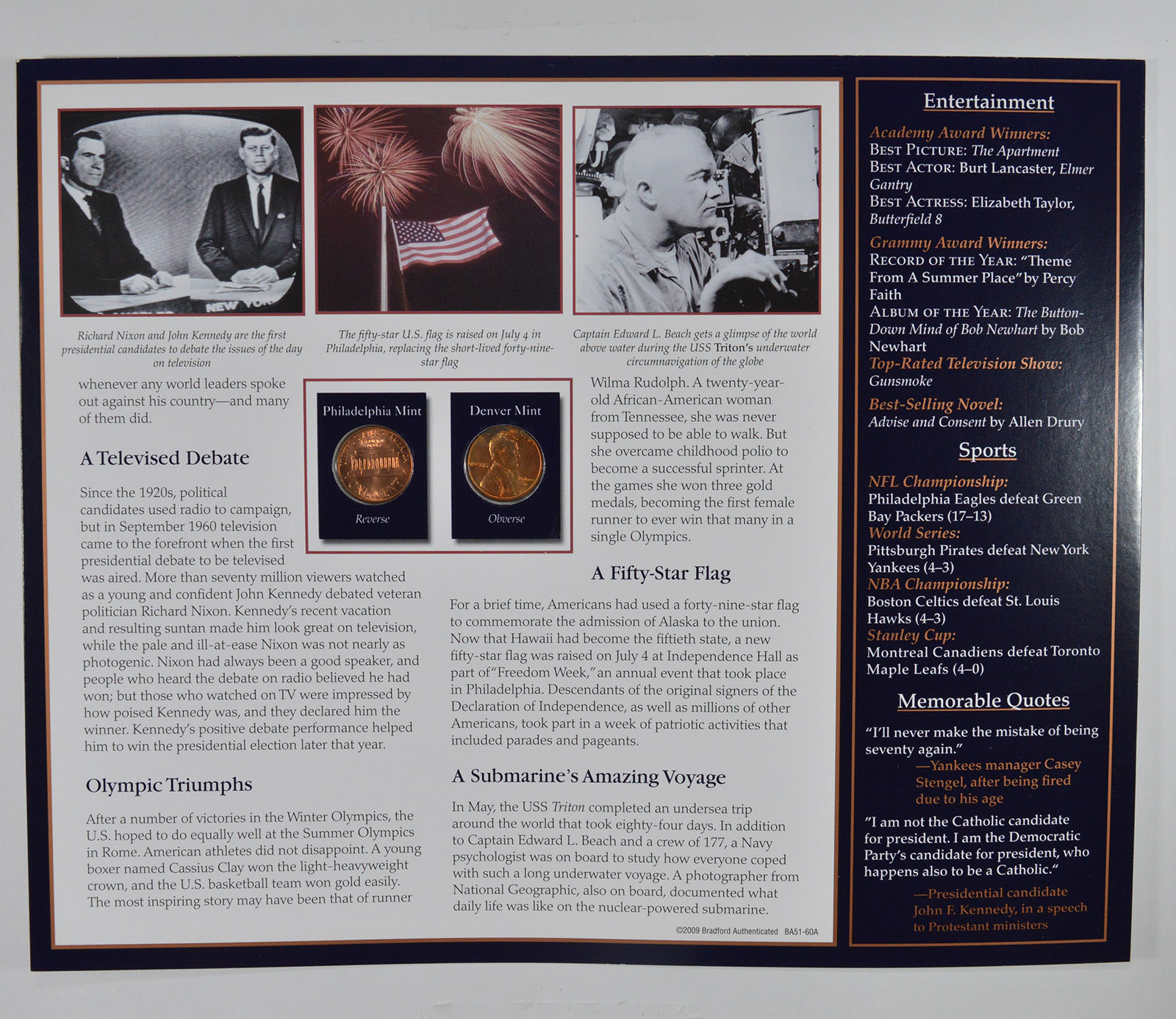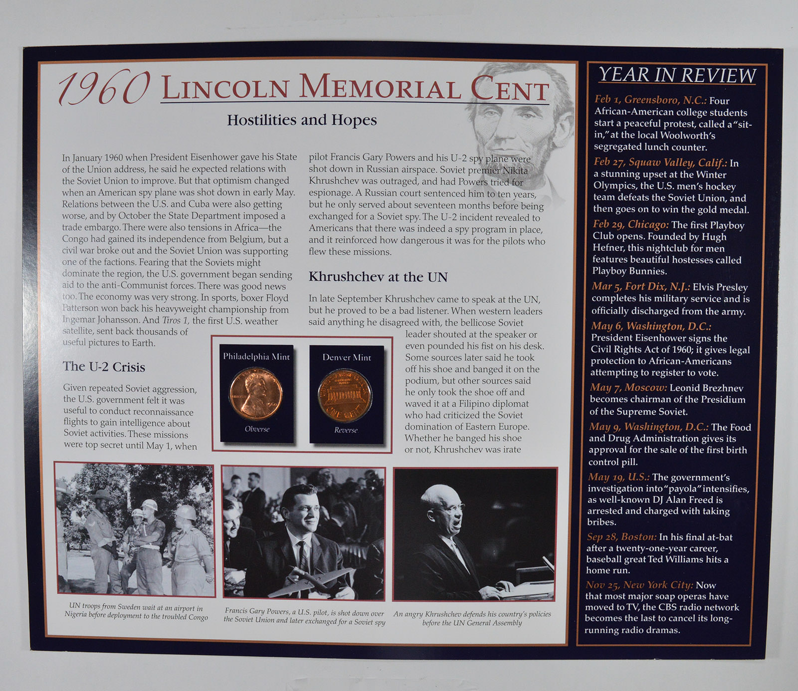 The Lincoln Bicentennial Coin Collection Series - 1960 Lincoln Cents - With Historic Display