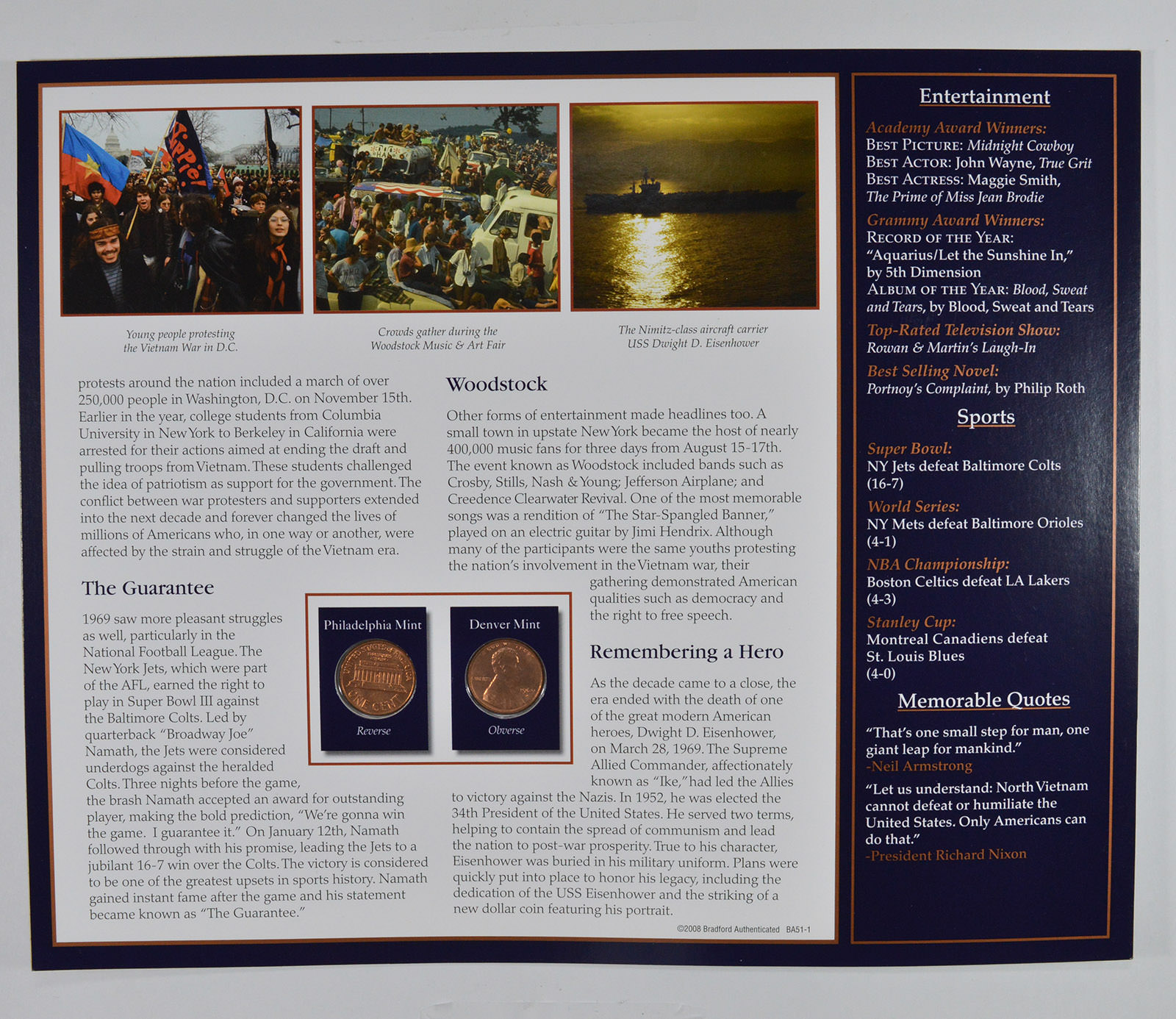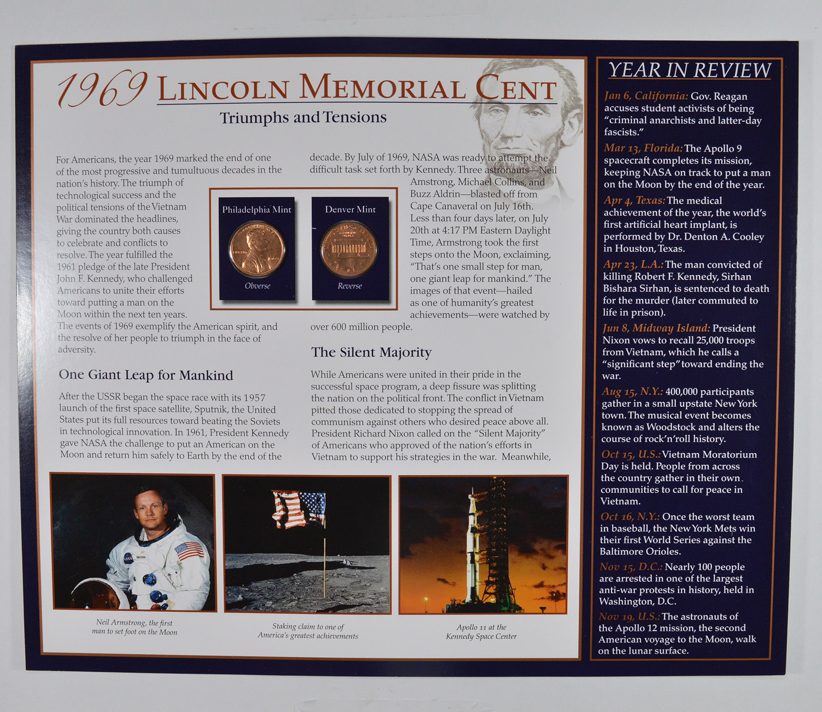 The Lincoln Bicentennial Coin Collection Series - 1969 Lincoln Cents - With Historic Display