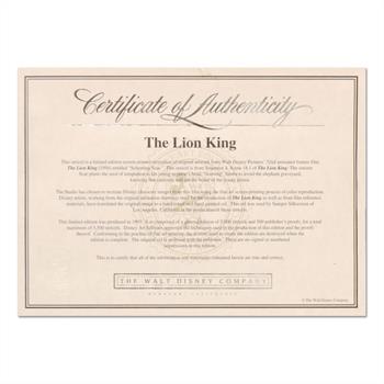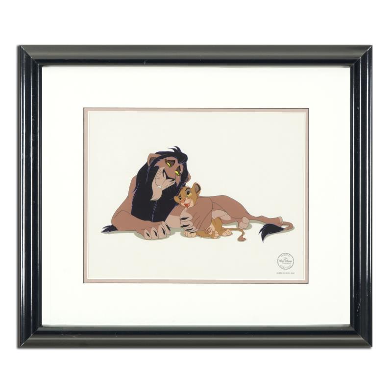 "The Lion King" is a SOLD OUT limited edition sericel from Disney from a general edition of 5000. This piece features the Simba from the 1994 Disney film, "The Lion King". Includes Certificate of Authenticity. This piece comes framed. Measures approx. 21.5" x 18.5" (with frame) 11" x 7" (image). ** Please note: there are noticeable sings of wear on the frame and acrylic protective cover but the piece is in otherwise good condition.