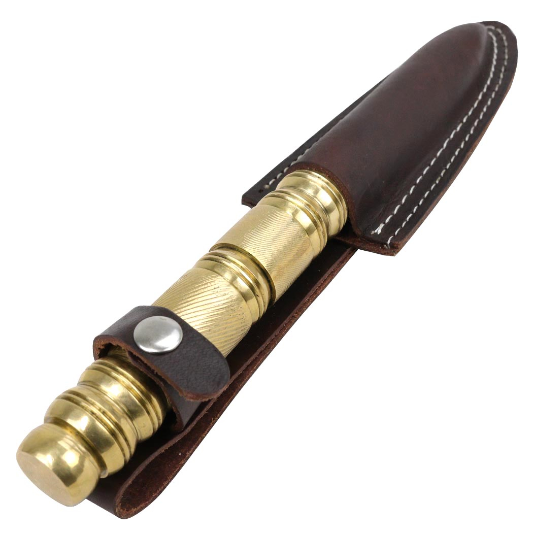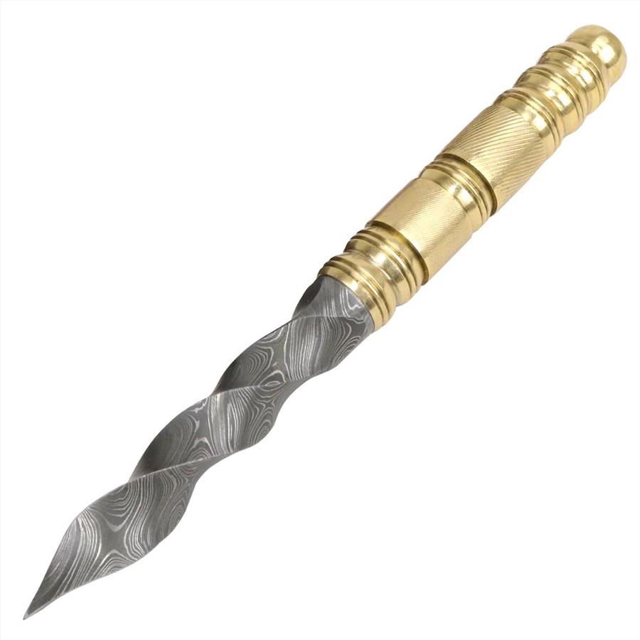 TheBoneEdge 10" Damascus Folded Steel Twist Dagger Gold Handle Leather Sheath