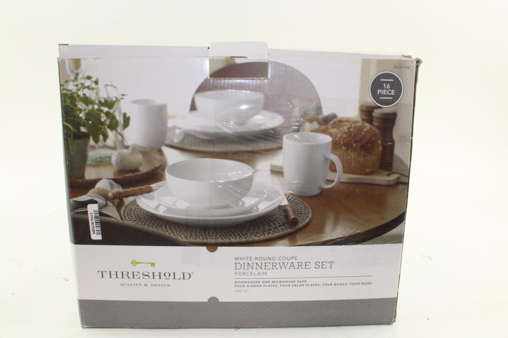 Get a great deal with this online auction for a porcelain dinner service set presented by Property Room on behalf of a law enforcement or public agency client. - Brands: Threshold