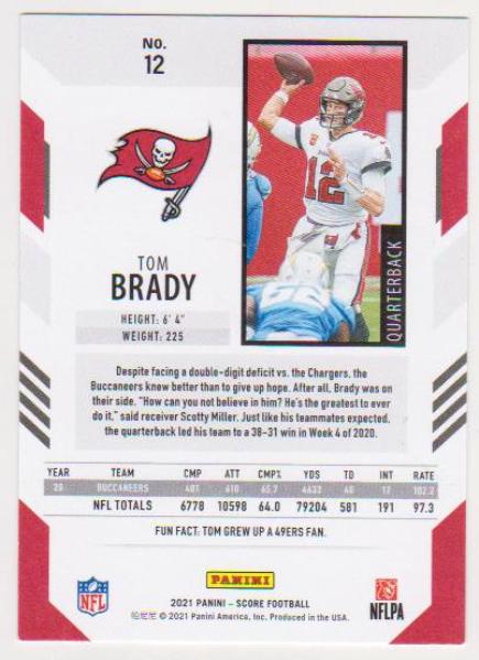 Tom Brady 2021 Score #12 Card