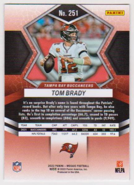 This is a 2022 Panini Mosaic Tom Brady #251 card.  It is an approximately NM-MT condition card of this retired NFL star.