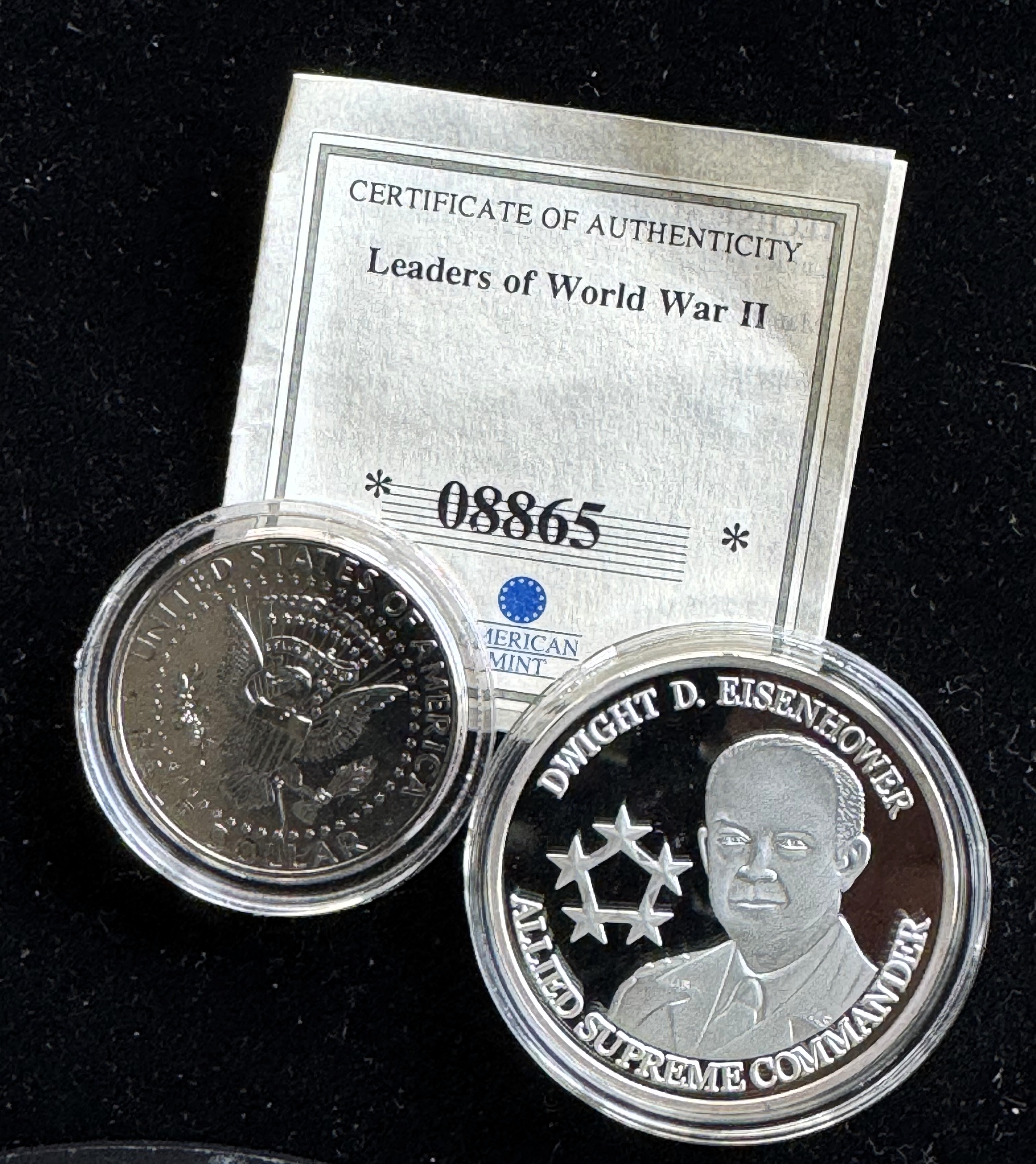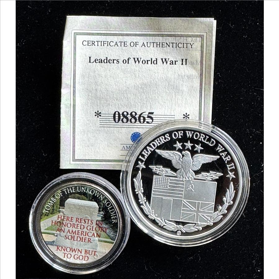 TOMB OF UNKNOWN SOLDIER UNC HALF DOLLAR & IKE PROOF LEADERS OF WW II W/COA