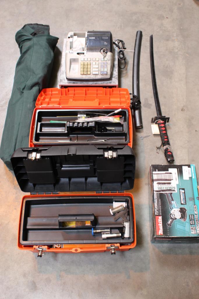 Get a great deal with this online auction for a bulk lot presented by Property Room on behalf of a law enforcement or public agency client. - Plastic toolboxes with interior caddies, brands: Stanley and Home Depot, 2 pieces, toolboxes includes various hand tools inside