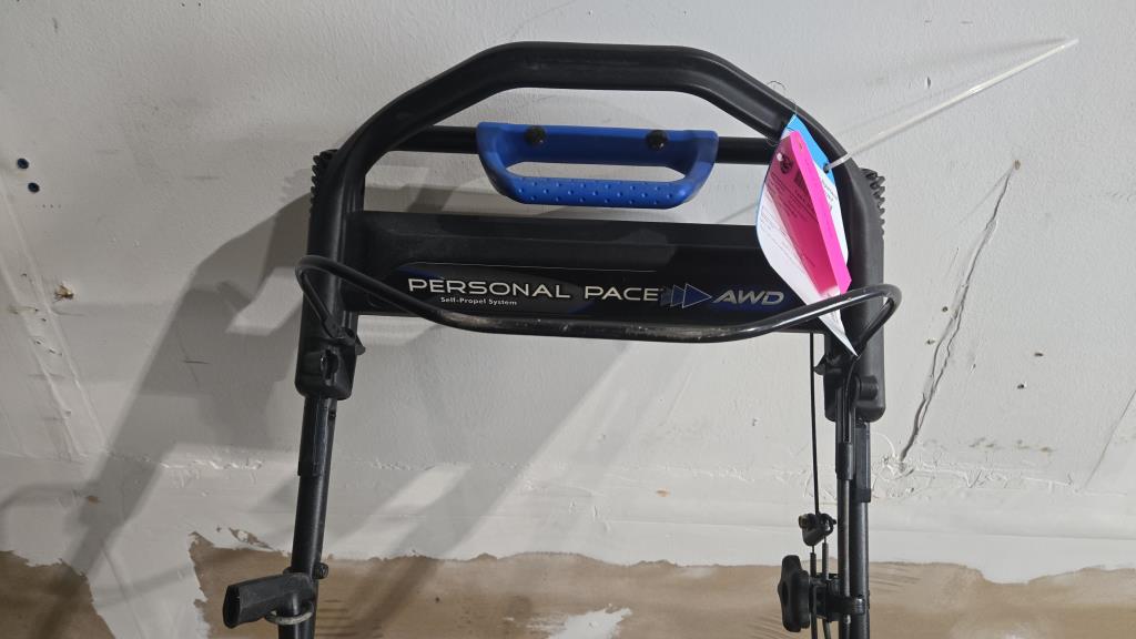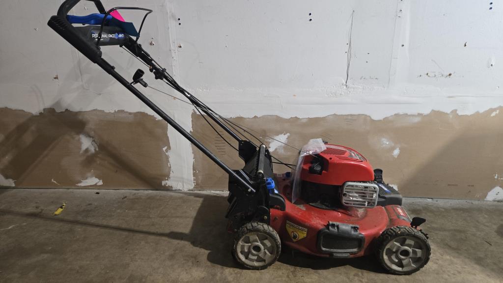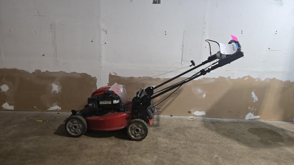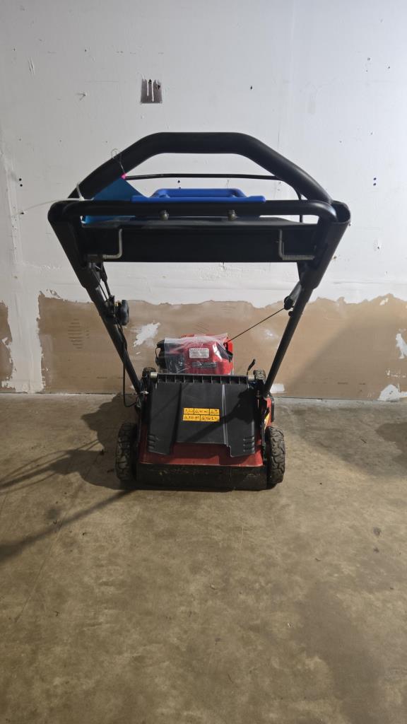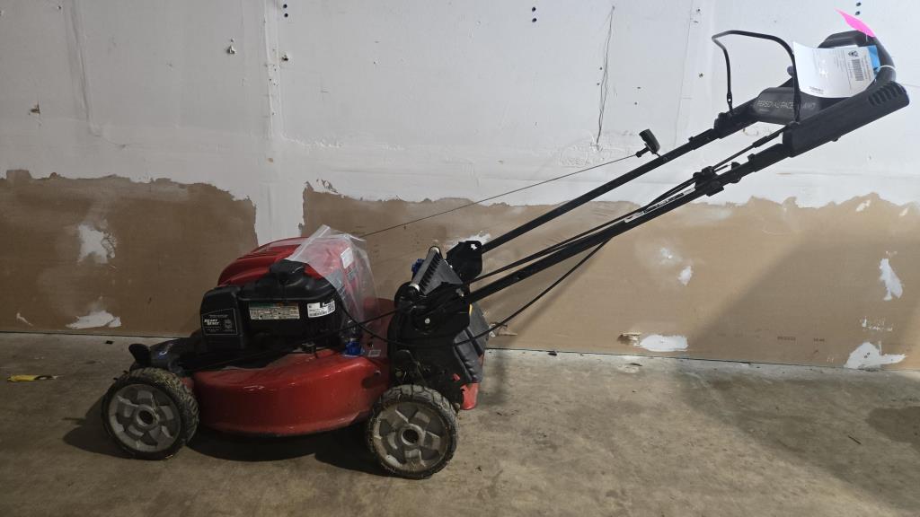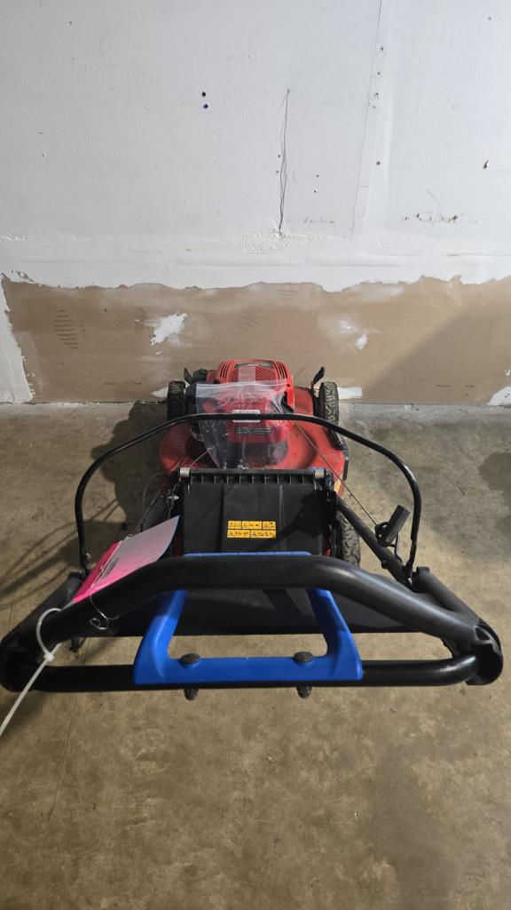 - item info: hose attachment, self propel, Briggs & Stratton Engine, adjustable wheel height, gas powered, pull cord start