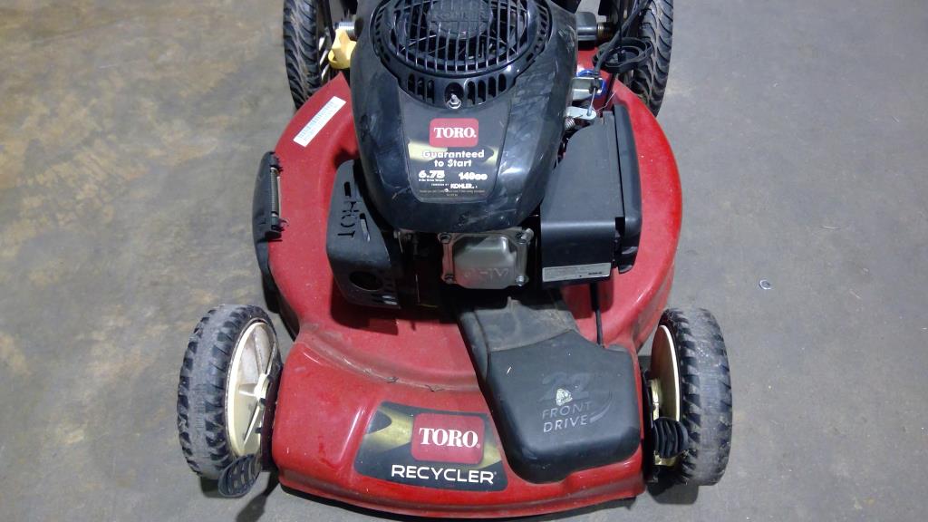 - Item info: gas powered, pull cord start, front drive 22", Kohler engine, adjustable cut height, 4 wheels for easy mobility, push handle with trigger throttle, wheel locks, back discharge, 149cc
