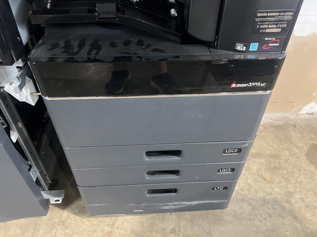 - Item info: electric, 3.5 ppm, full color and B/W, digital screen, 3 drawer w/addition side, printer attachment, 2x 550 paper trays, print and scan and fax options.