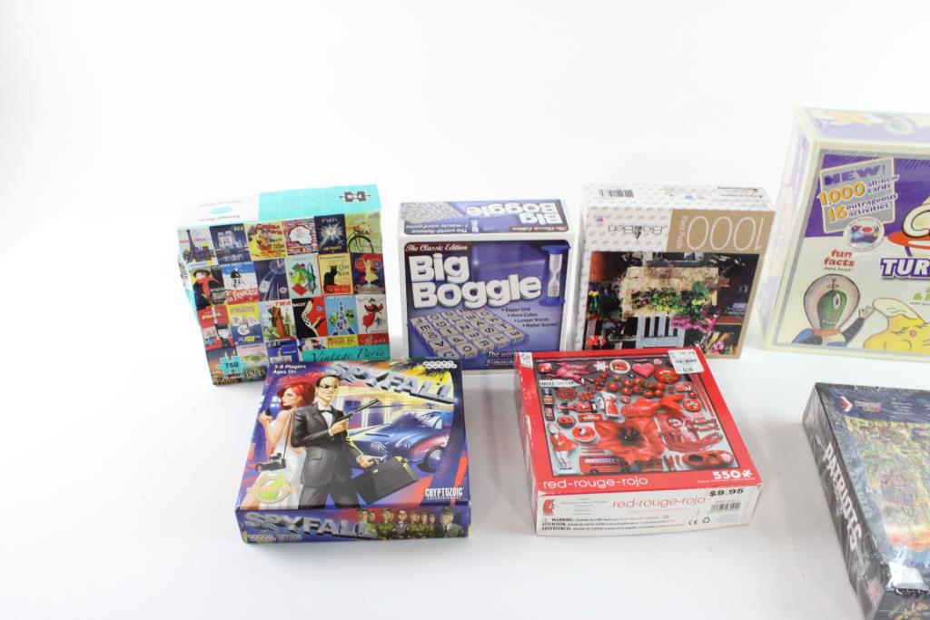 Get a great deal with this online auction presented by PropertyRoom.com on behalf of a law enforcement or public agency client. - Cranium, Vintage Paris puzzle, Patriots Puzzle, Boggle & more