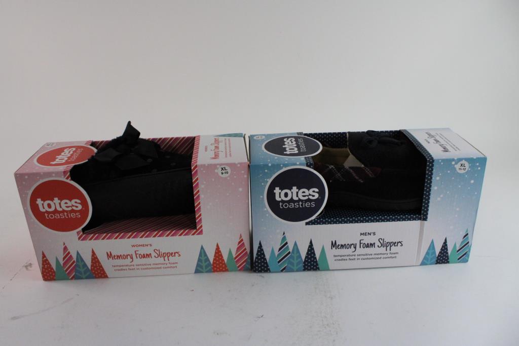 Totes Toasties Memory Foam Slippers, 2 Pieces