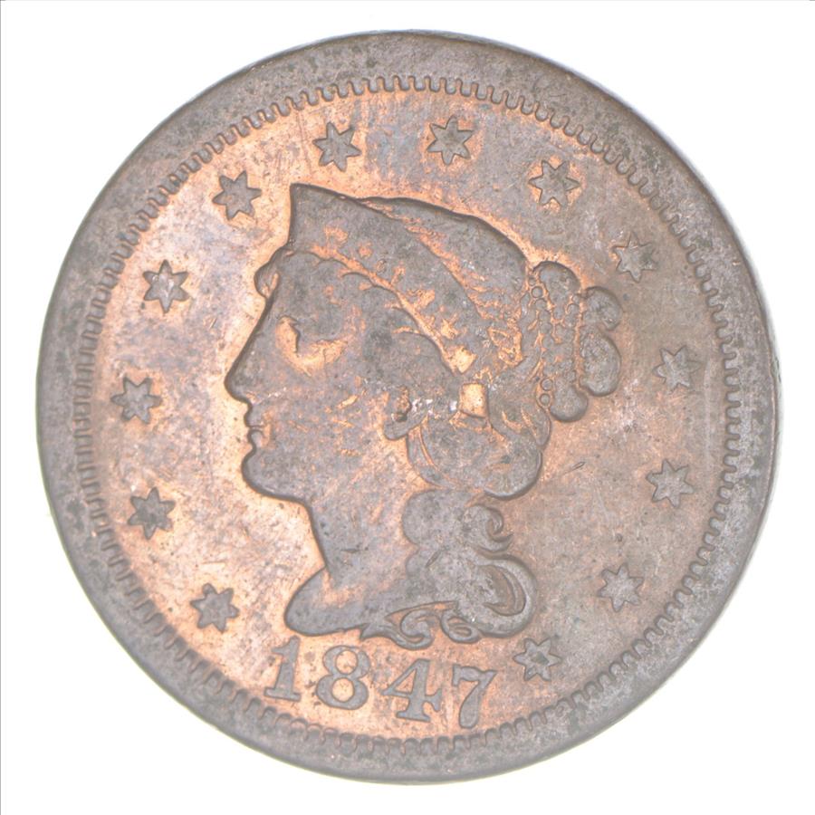 Tough - 1847 Braided Hair Large Cent - US Early Copper Coin