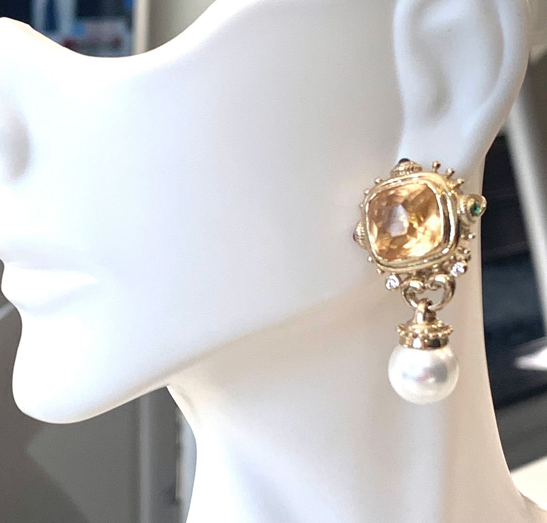 TOVA Designer .925 Sterling Silver Pearl, Golden Topaz Earrings