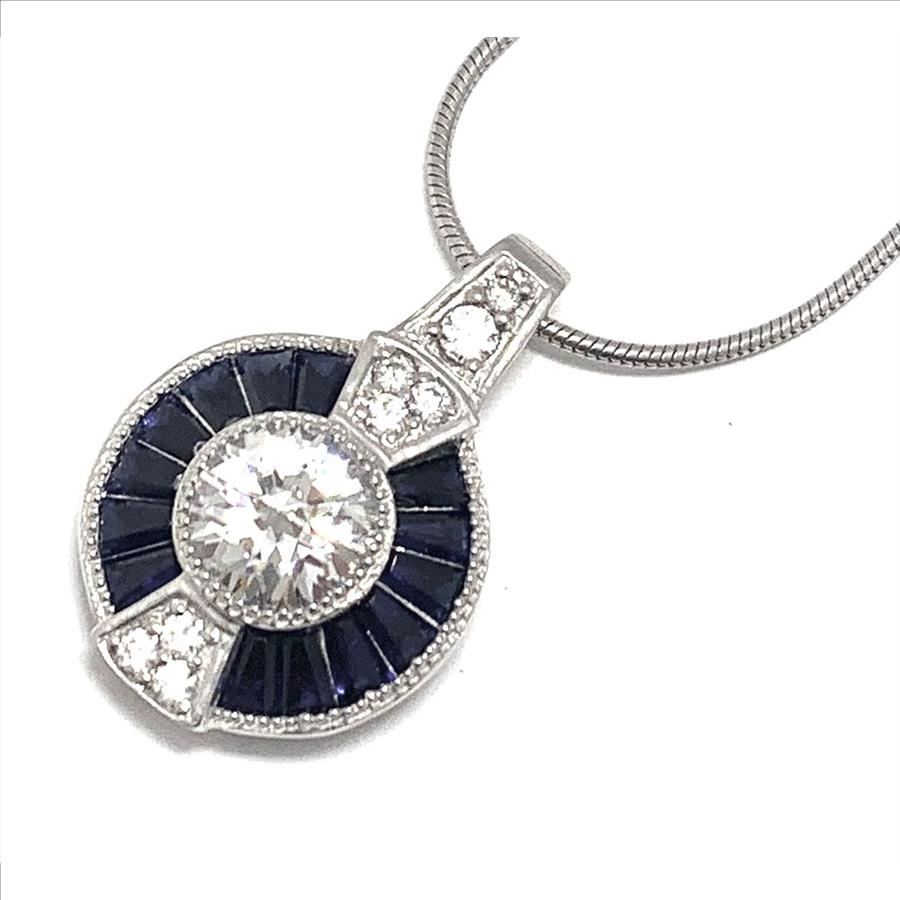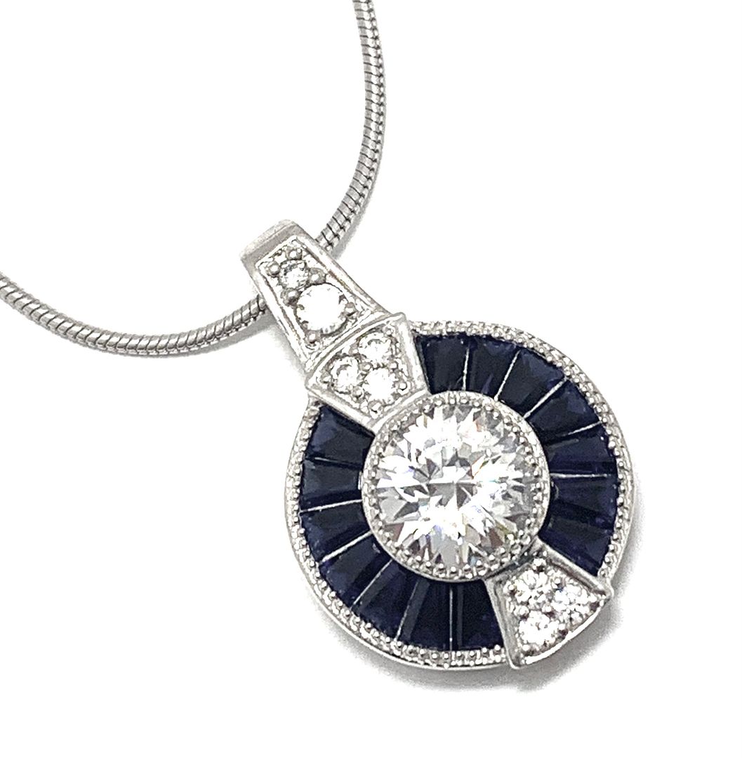 TOVA Designer .925 Sterling Silver Sapphire & Diamonique Diamond Necklace