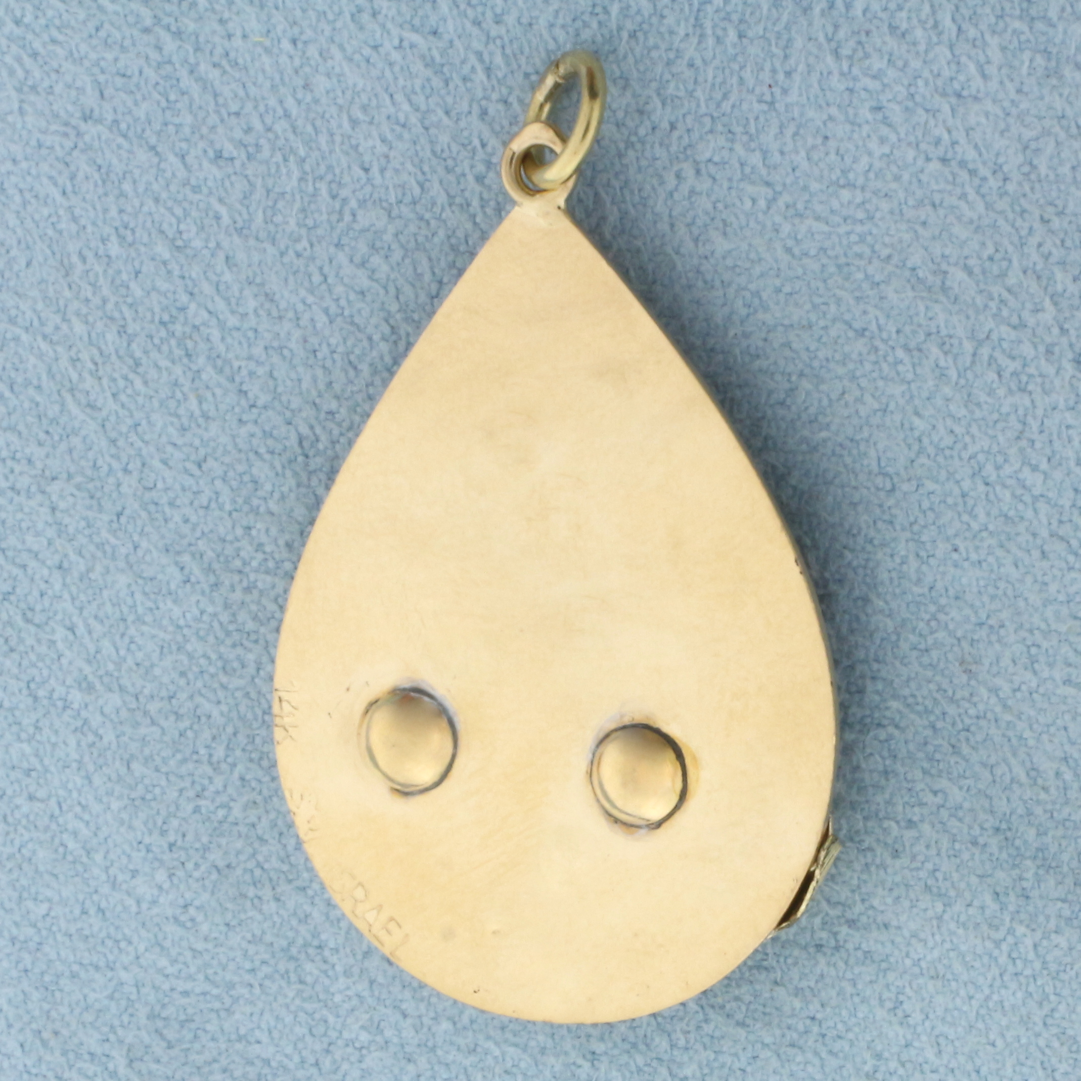 In 14k Yellow Gold. 1.5 inch long. 1 inch wide. 3D relief. 5.1g.