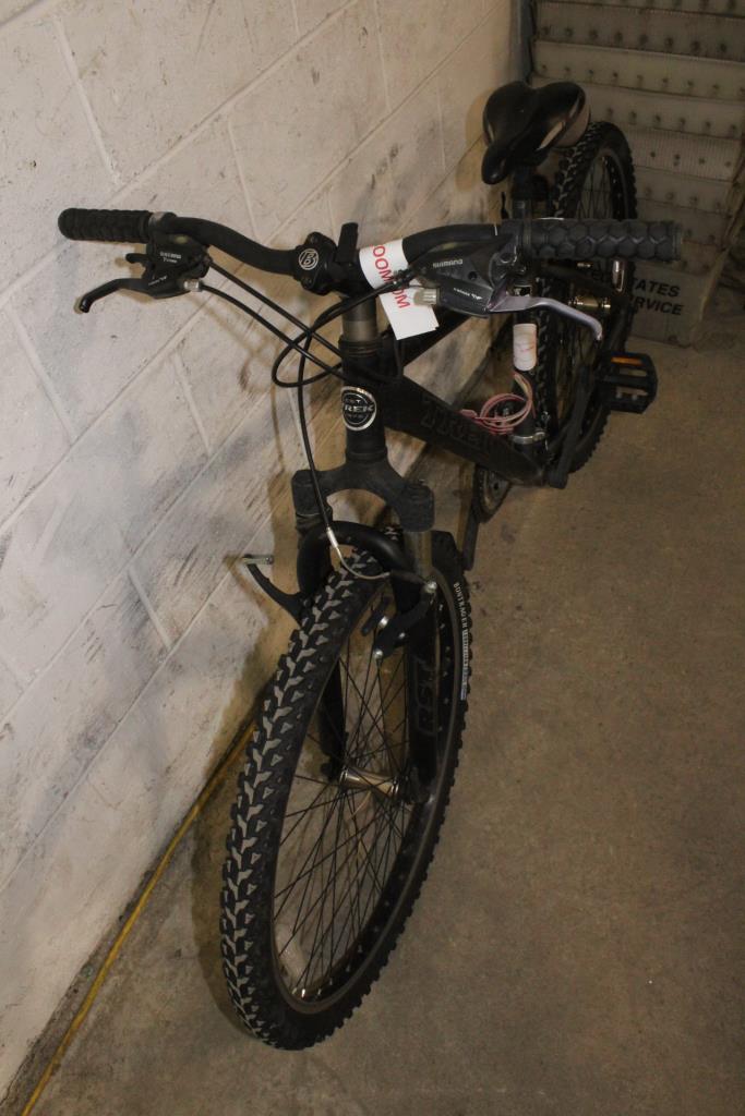 Get a great deal with this online auction presented by PropertyRoom.com on behalf of a law enforcement or public agency client. Frame Size: 16" Frame Material: UnknownSpeeds: 21Tire Size: 26 x 2.0Brakes: Tektro V-Brakes Suspension: Front Derailleurs: ShimanoShift Type: TriggerFrame Color: BlackPhysical Condition: Good, with scratches, scuffs, dirt, and wear, damage to grips and seat, some rust, damaged bottle holderThis bike has not been evaluated by a bicycle mechanic. Item may not have original parts, parts included may be damaged and non-functional. Parts may need to be adjusted, repaired or replaced. Some parts may be missing. Assembly Required: Bikes picked up at Will-Call are fully assembled but bikes that are shipped will require some assembly. Condition: Good