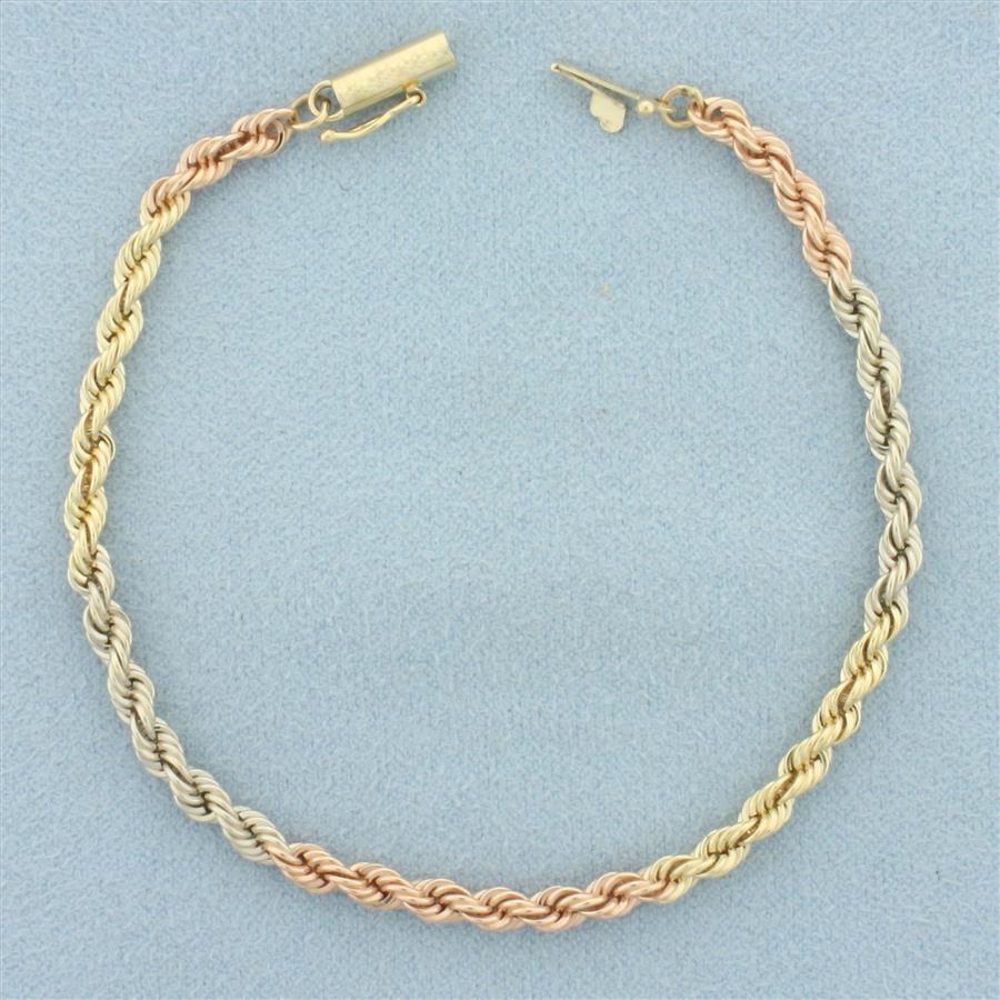 Tri Color Rope Bracelet in 14k Yellow, White and Rose Gold