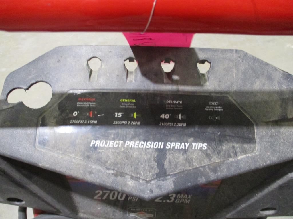 - ga spowered, pull cord start, 10ft spray hose with nozzle, 2700PSI, 2.3GPM, briggs and startton eady start engine, 7.75HP, 1.75cc, handle with dual wheels for easy mobility