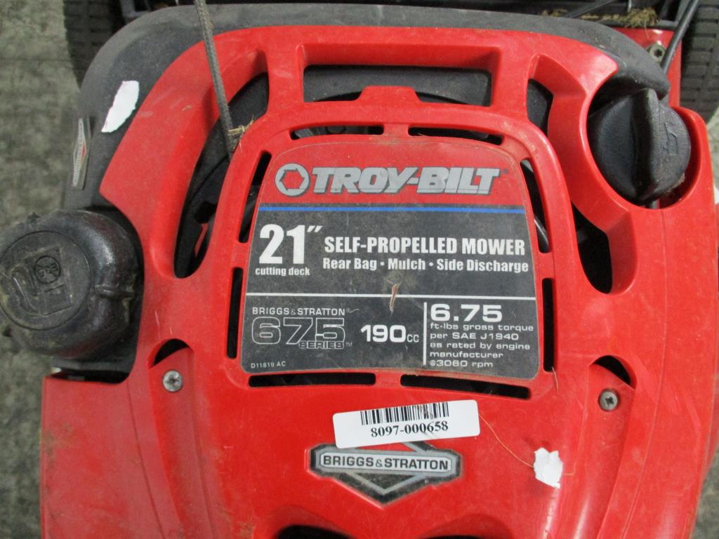 Get a great deal with this online auction presented by PropertyRoom.com on behalf of a law enforcement or public agency client. Model: 12A-A26MDLLA Gas powered, pull cord self propelled, 21" cut, side discharge, rear discharge no bag, multch, Briggs&STRATTON 675 series engine, 6.75 hp 190cc, ADJUSTABLE CUT HEIGHT. - Measurements: 37" T X 22" W X 72" L