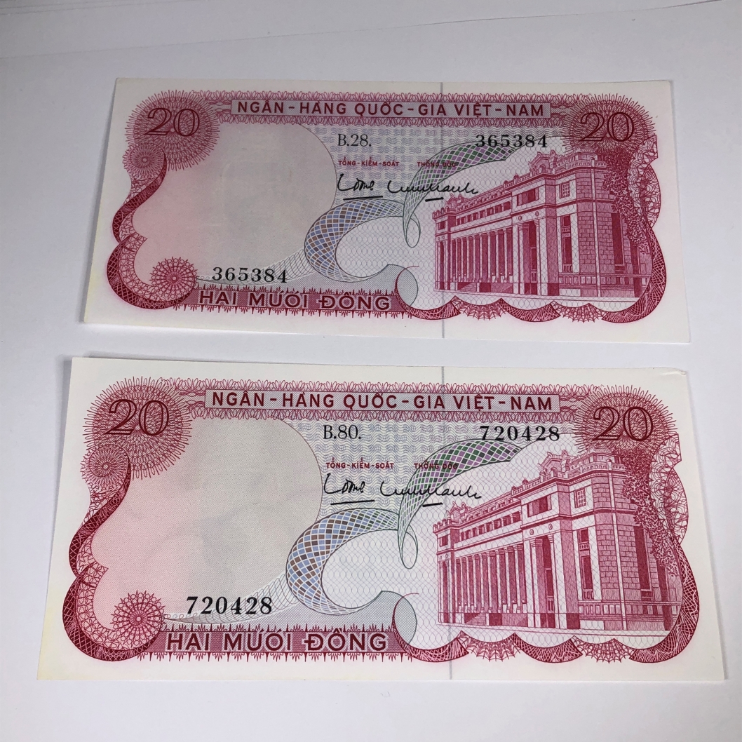 Two 1969 Vietnam 20 Dong Bank Notes*Crisp Uncirculated