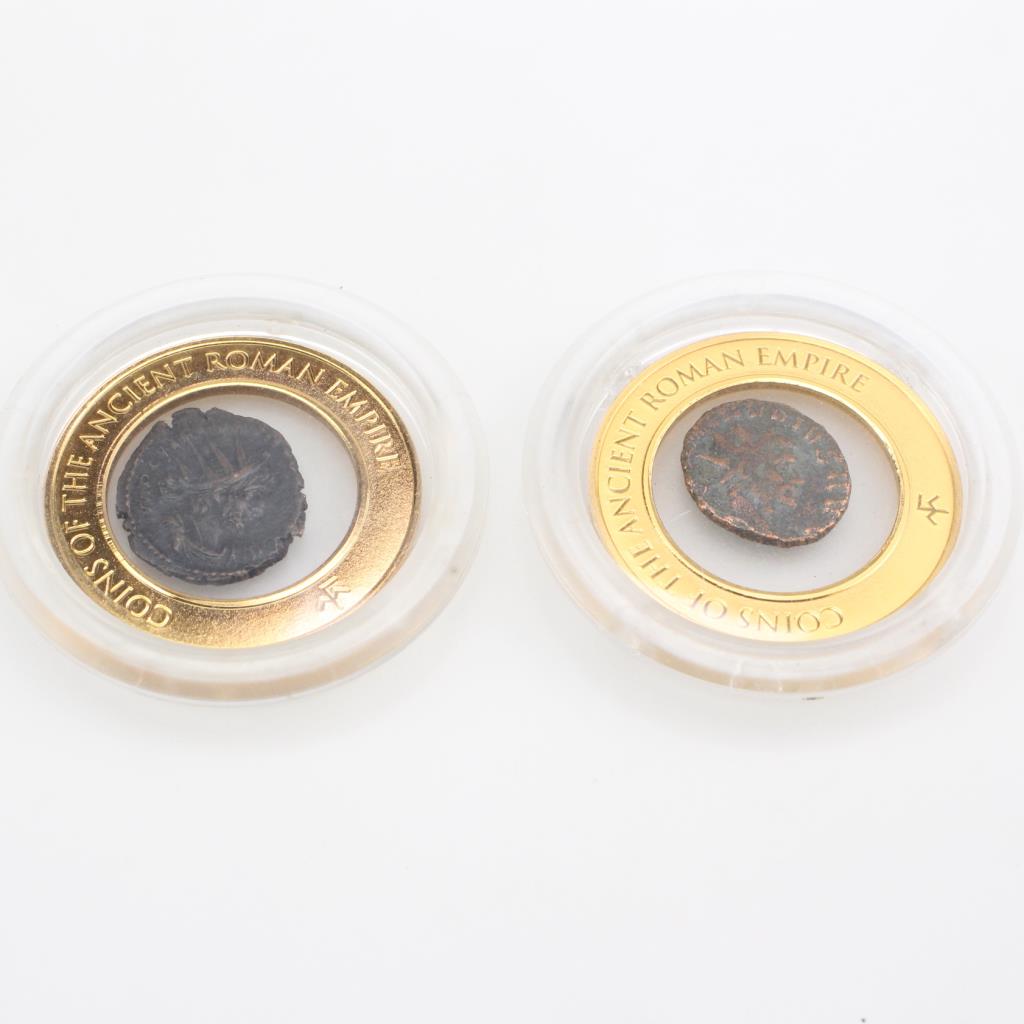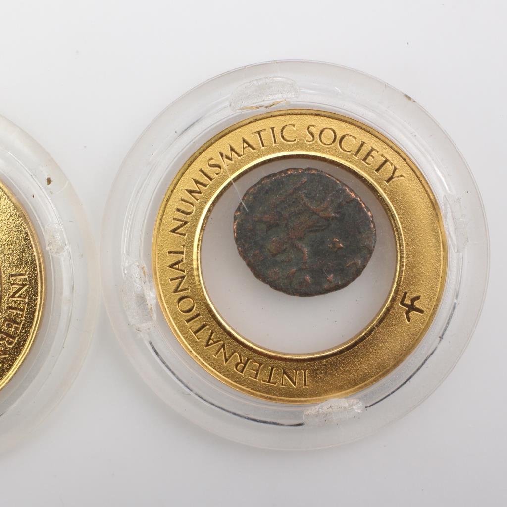 Two Ancient Roman Empire Coins Encase By International Numismatic Society