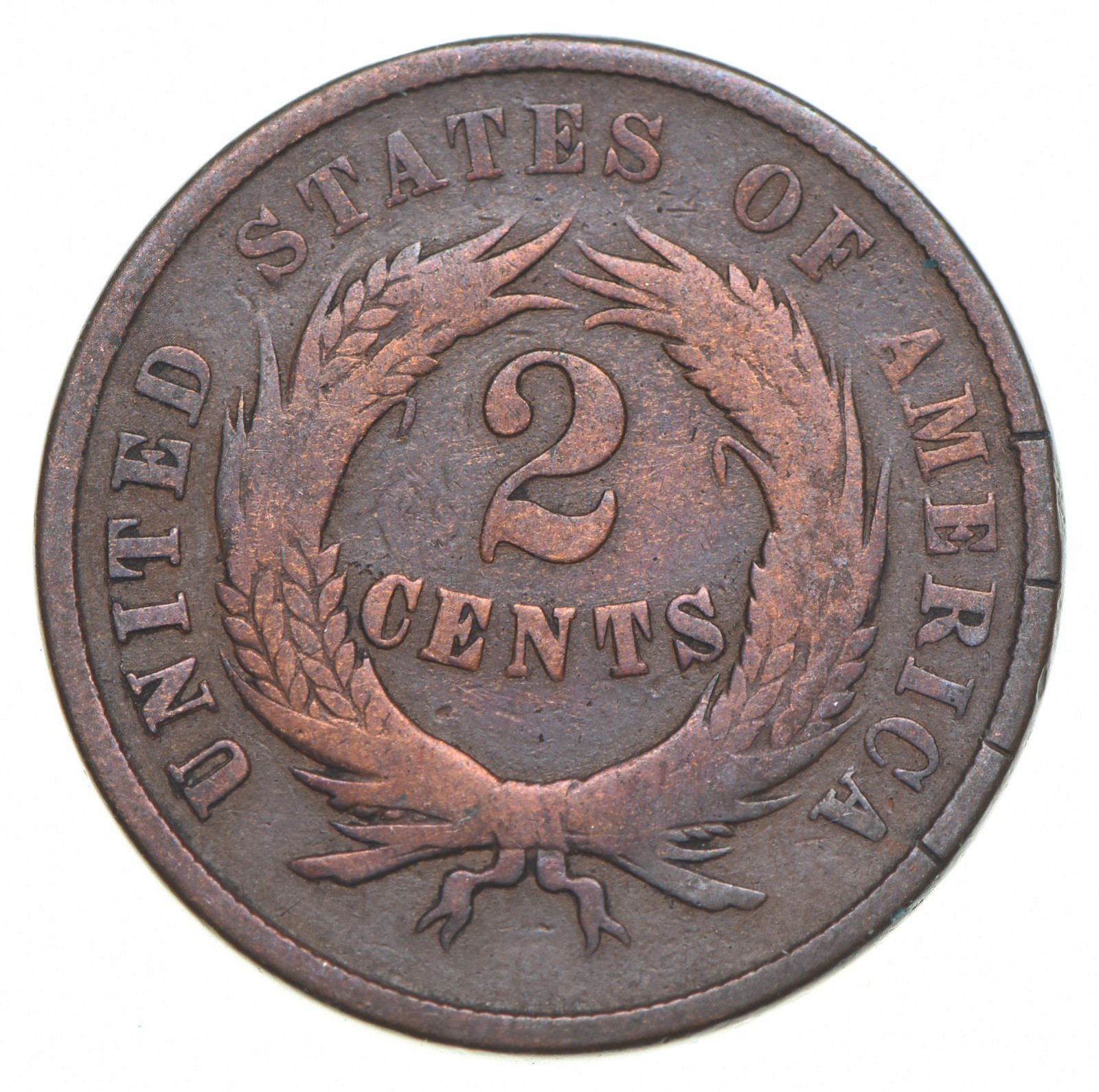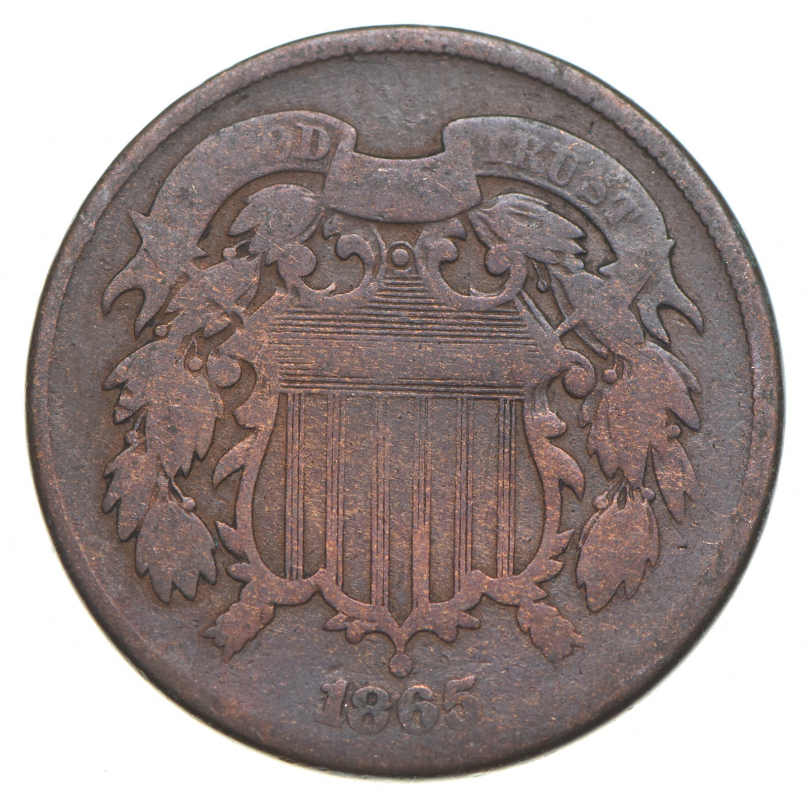 TWO CENT - 1865 US TWO 2 Cent Piece - First Coin with In God We Trust Motto