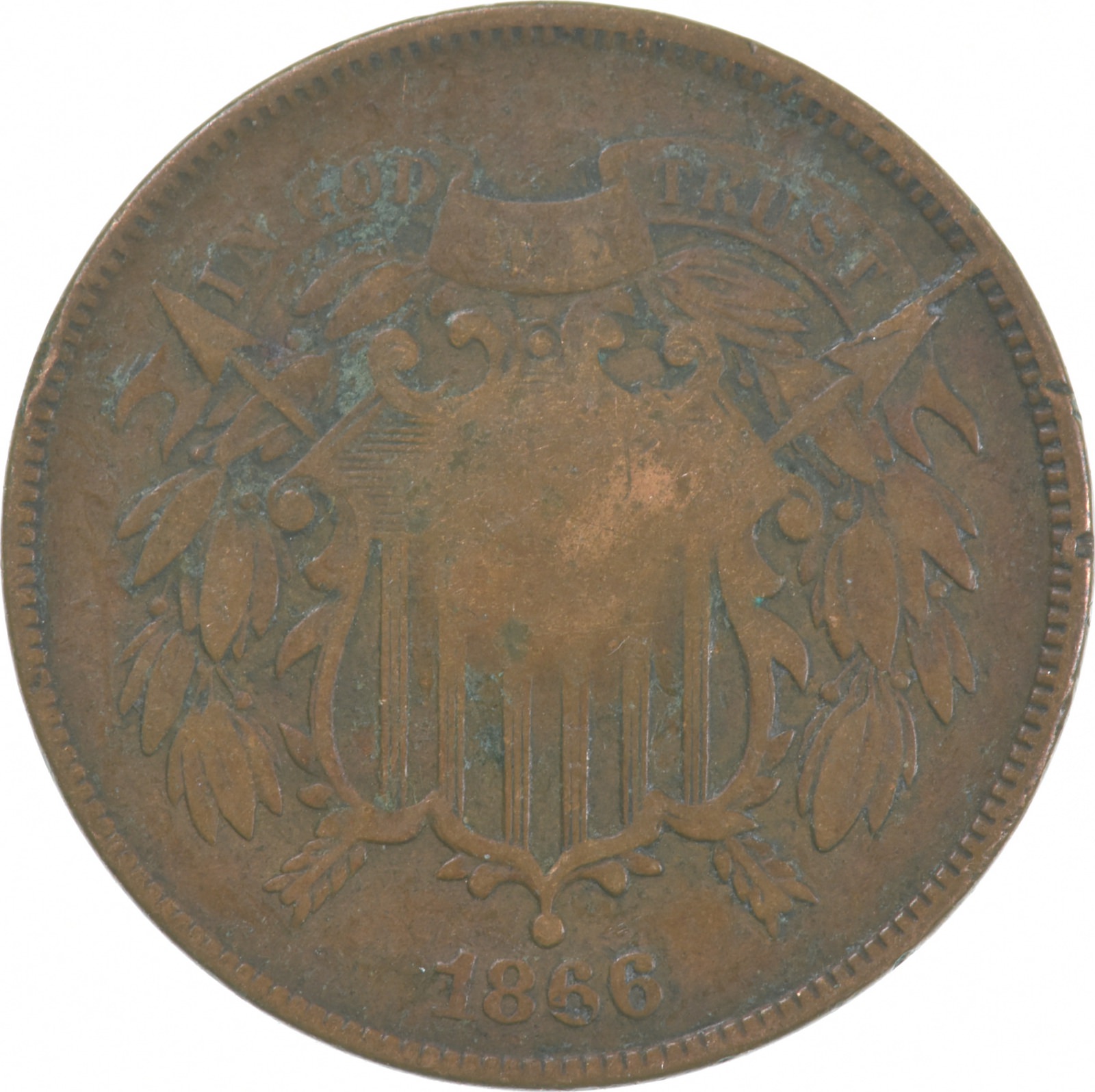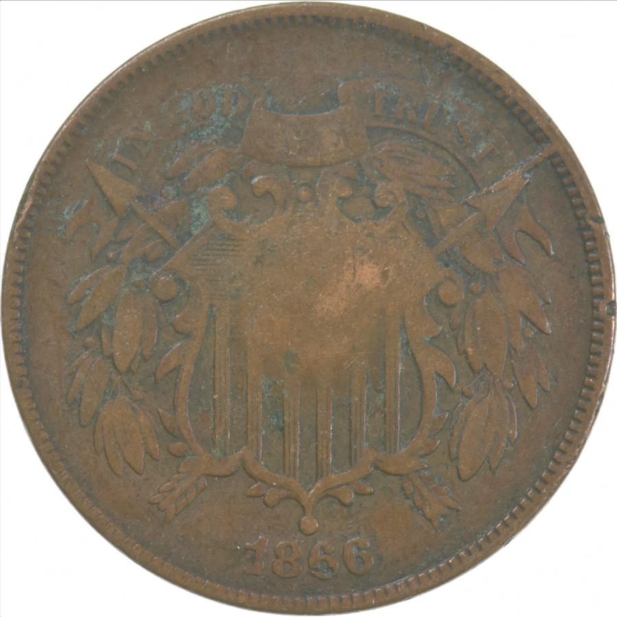 TWO CENT - 1866 US TWO 2 Cent Piece - First Coin with In God We Trust Motto