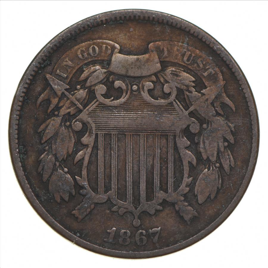 TWO CENT - 1867 US TWO 2 Cent Piece - First Coin with In God We Trust Motto