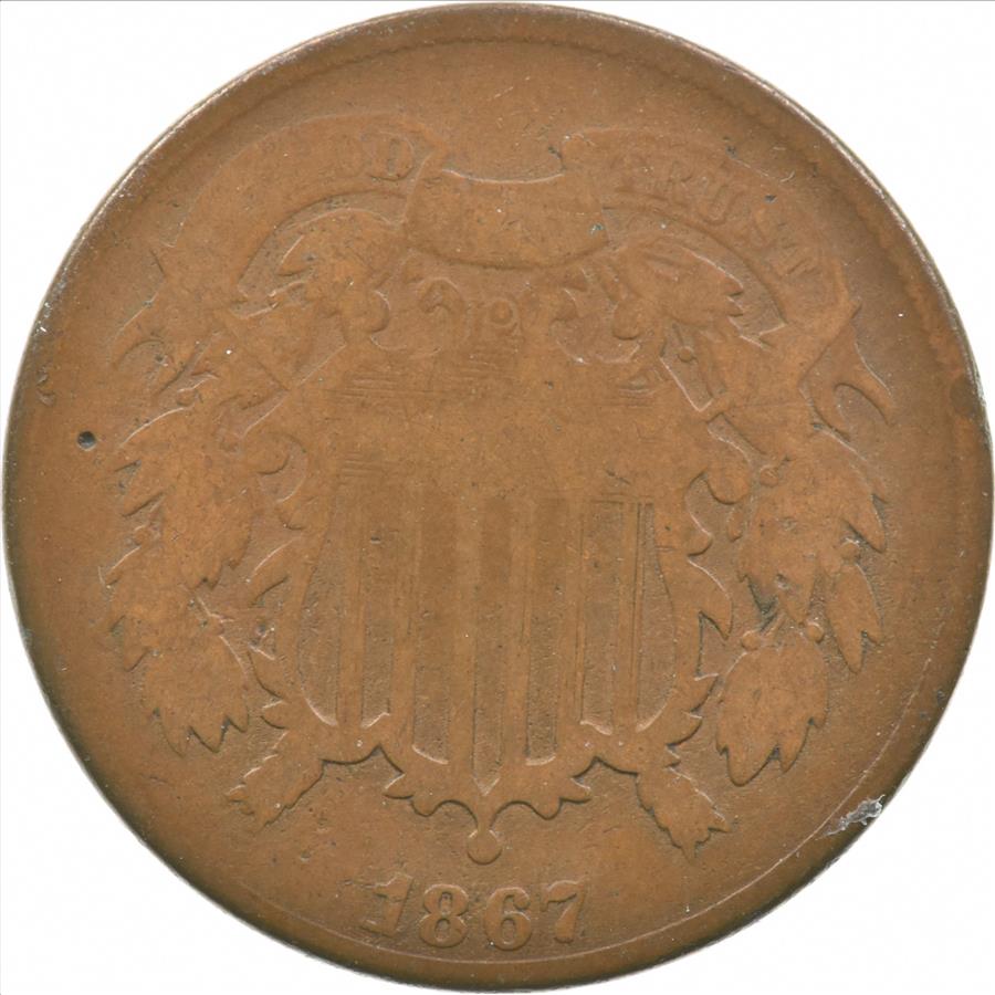 TWO CENT - 1867 US TWO 2 Cent Piece - First Coin with In God We Trust Motto