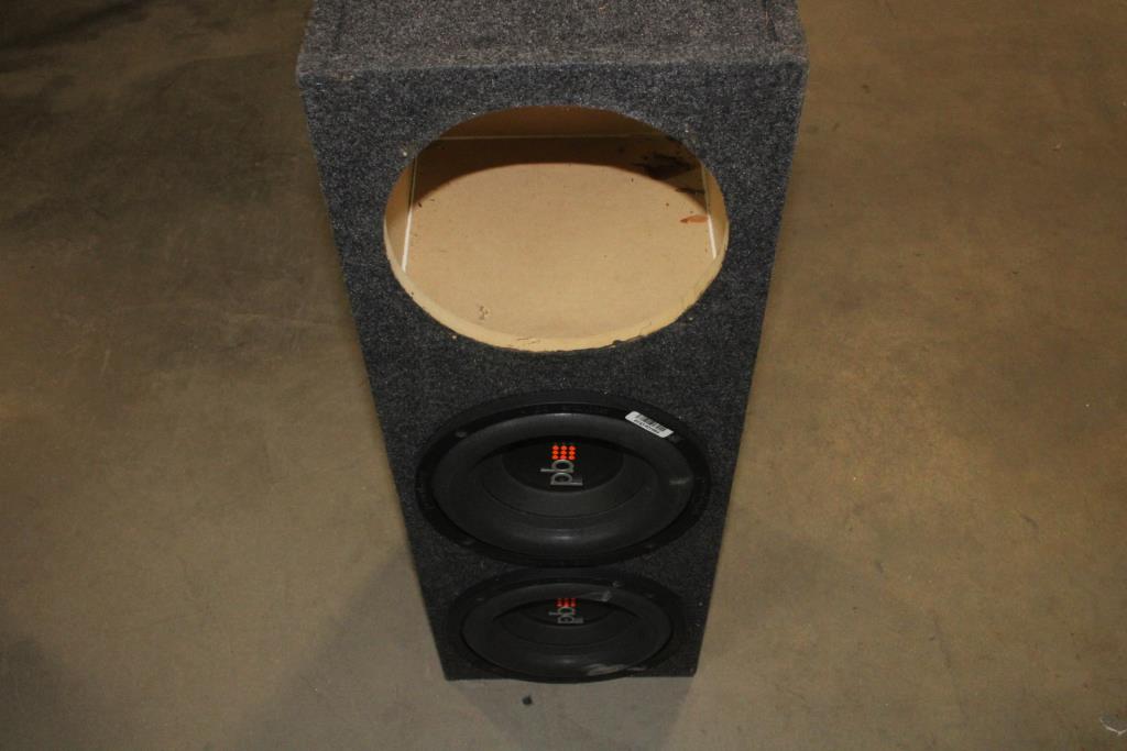 Two PowerBass Subwoofers With Box