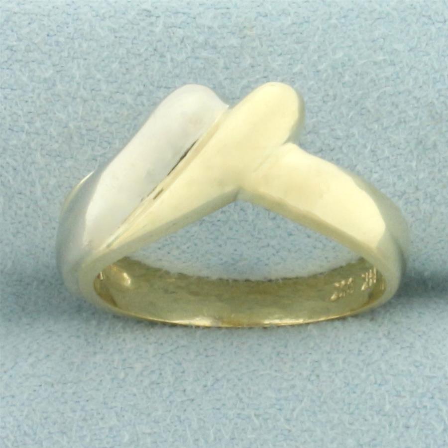 Two Tone Swoop Design Ring in 14k Yellow and White Gold