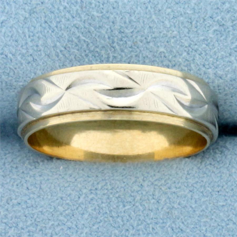 Two Tone Wave Design Wedding Band Ring in 14K Yellow and White Gold