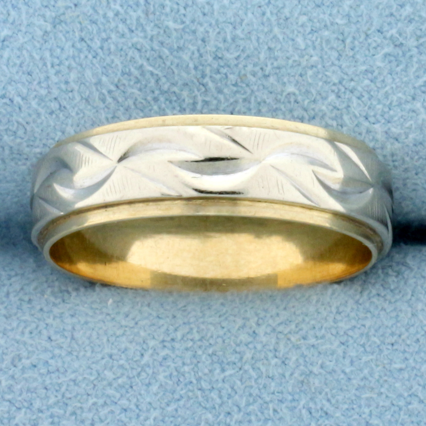 In 14K Yellow and White Gold. 5.8mm wide. Size 8 3/4. 4.4g