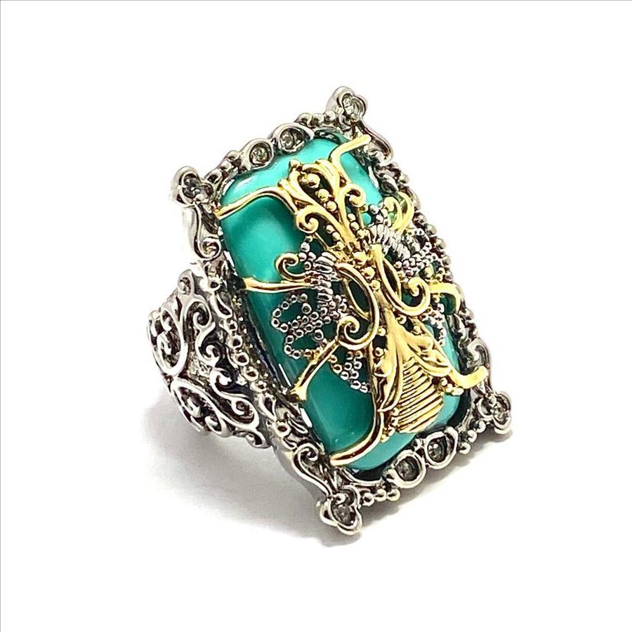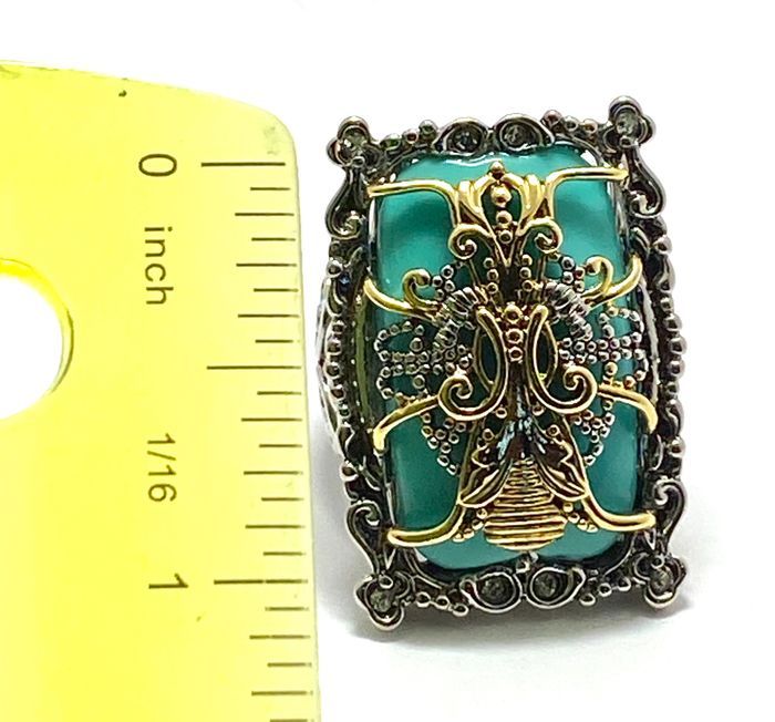 Two-Tone, Turquoise & White Zircon Ring sz6
